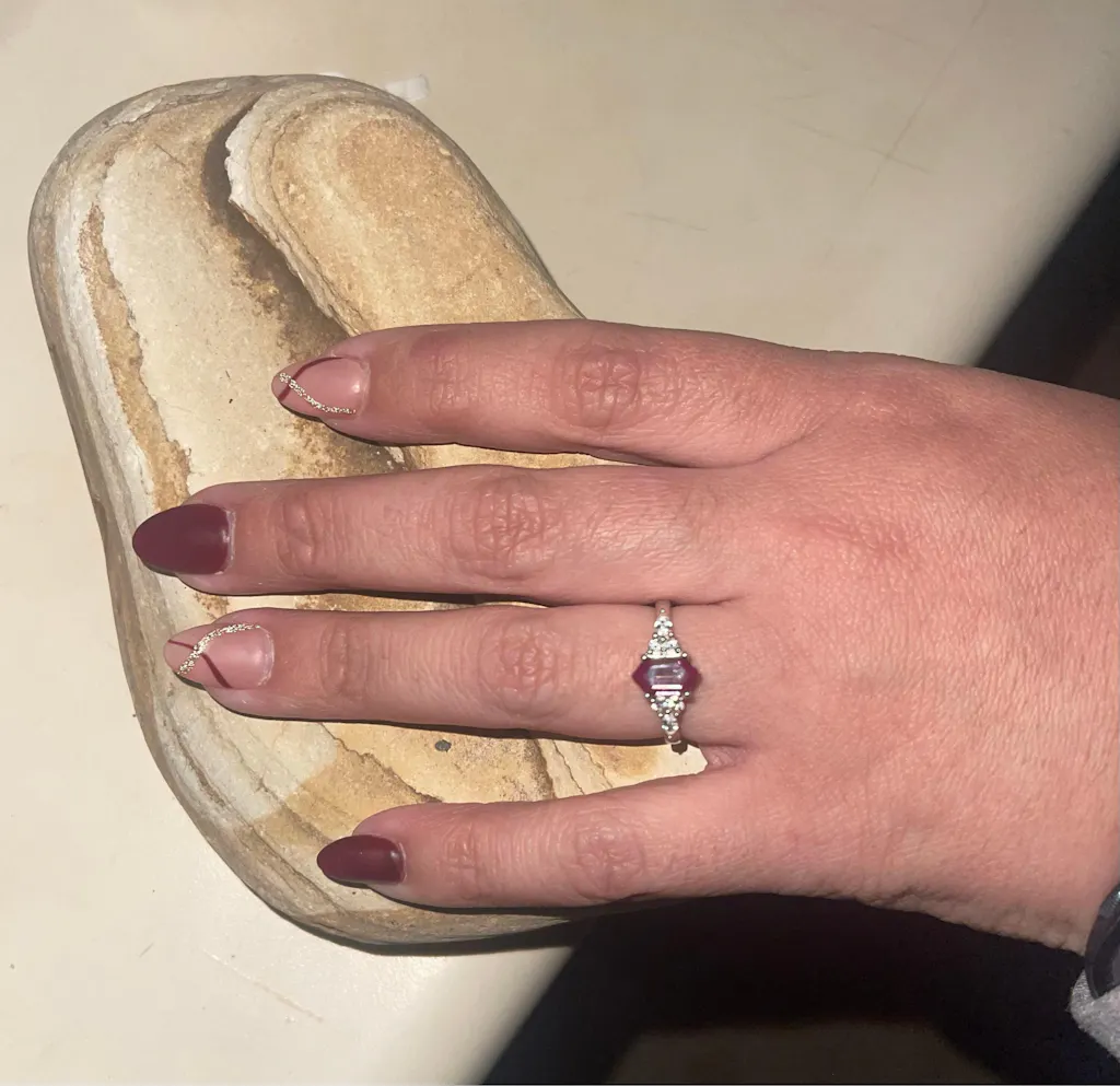I am in love with this ring! Such a gorgeous stone and the shape of the hexagon accented with cz on the sides is perfect. Very nice design and quality.
