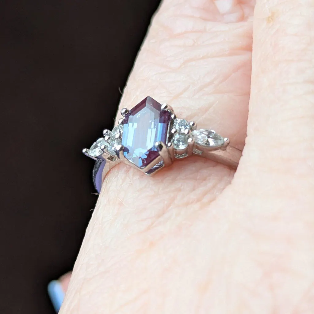 Sonnet Hexagon Alexandrite Engagement Ring in Sterling Silver