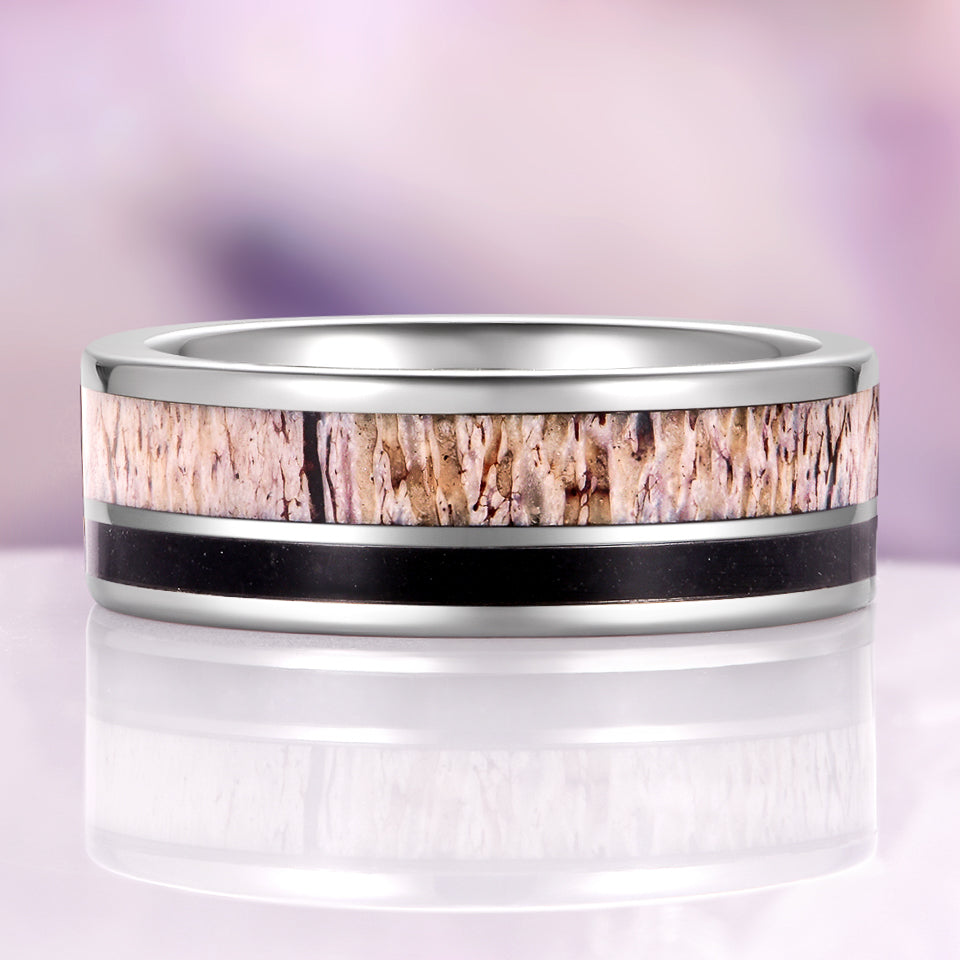 Elk Antler & Black Obsidian Tungsten Carbide Wedding Band (8mm)