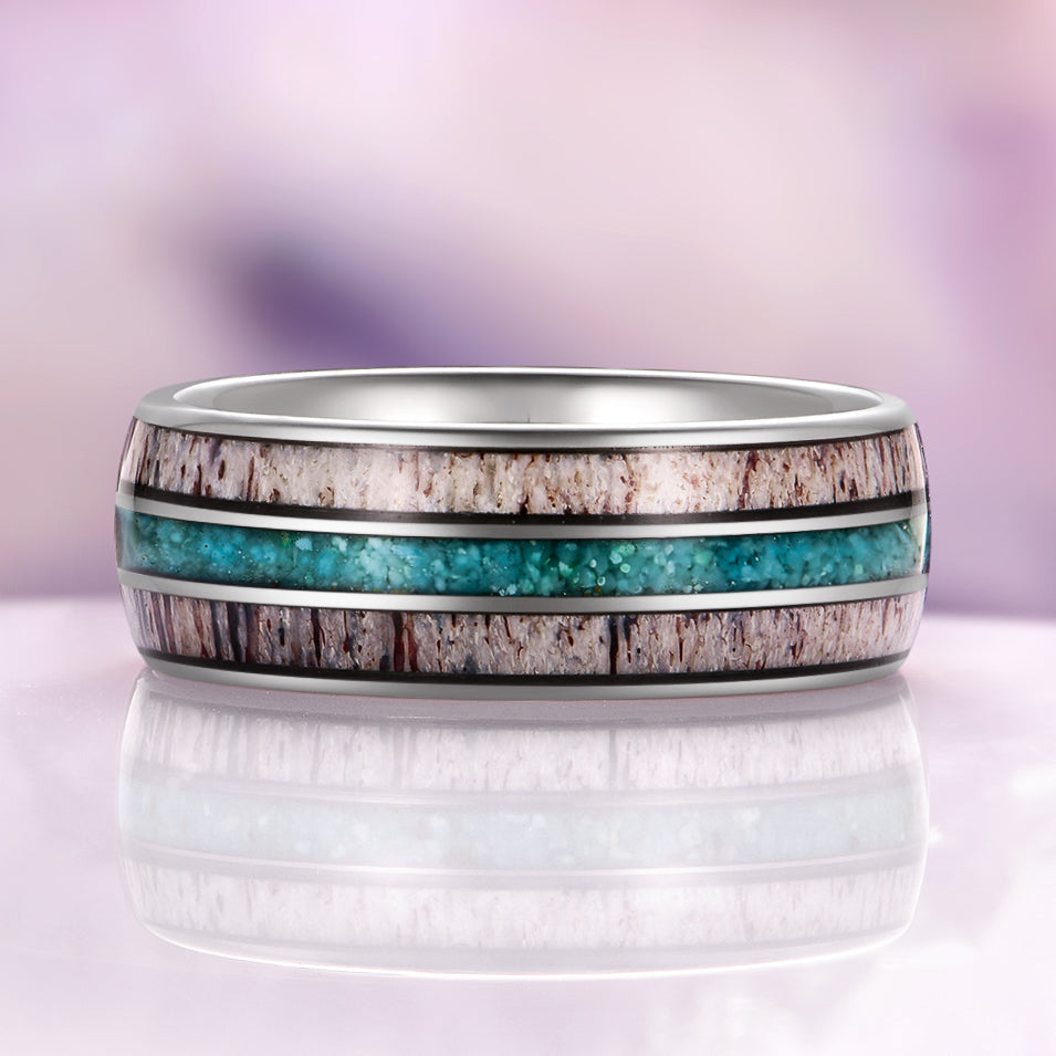 Elk Antler & Turquoise Tungsten Carbide Wedding Band (8mm)