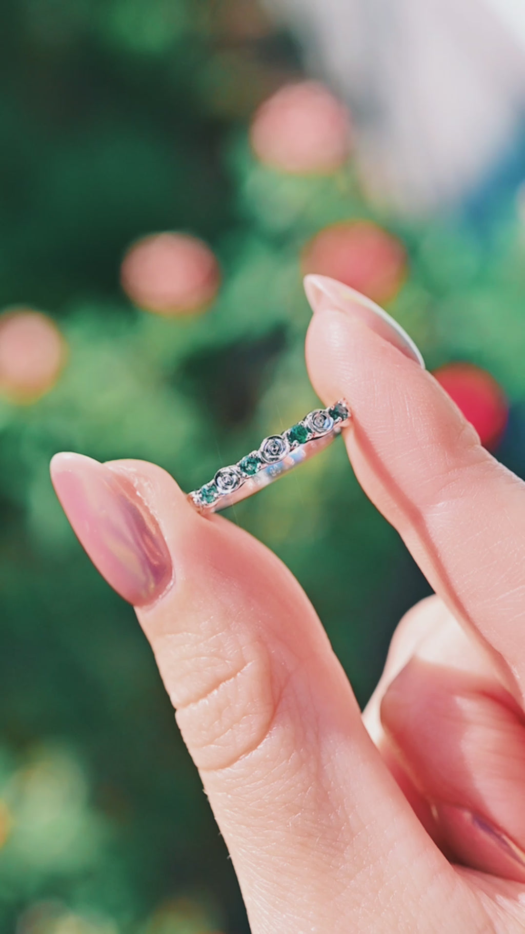 Delicate and enchanting, this Natural Green Moss Agate Rose Wedding Band in 14k solid white gold features sculpted rose details paired with genuine moss agate stones. With its nature-inspired design and one-of-a-kind inclusions, this band is a beautiful tribute to growth, love, and timeless romance. Whether worn alone, stacked, or paired with an engagement ring, it’s perfect for brides who adore organic beauty and whimsical design.