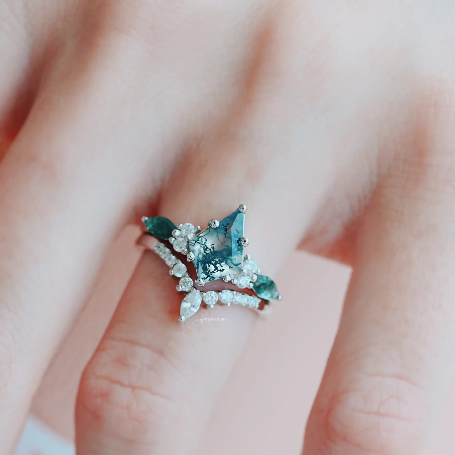 Skye Kite® Moss Agate Couples Ring Set
