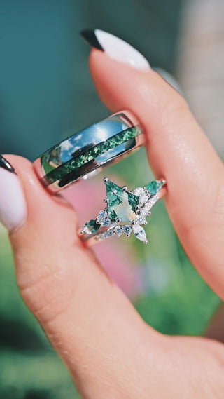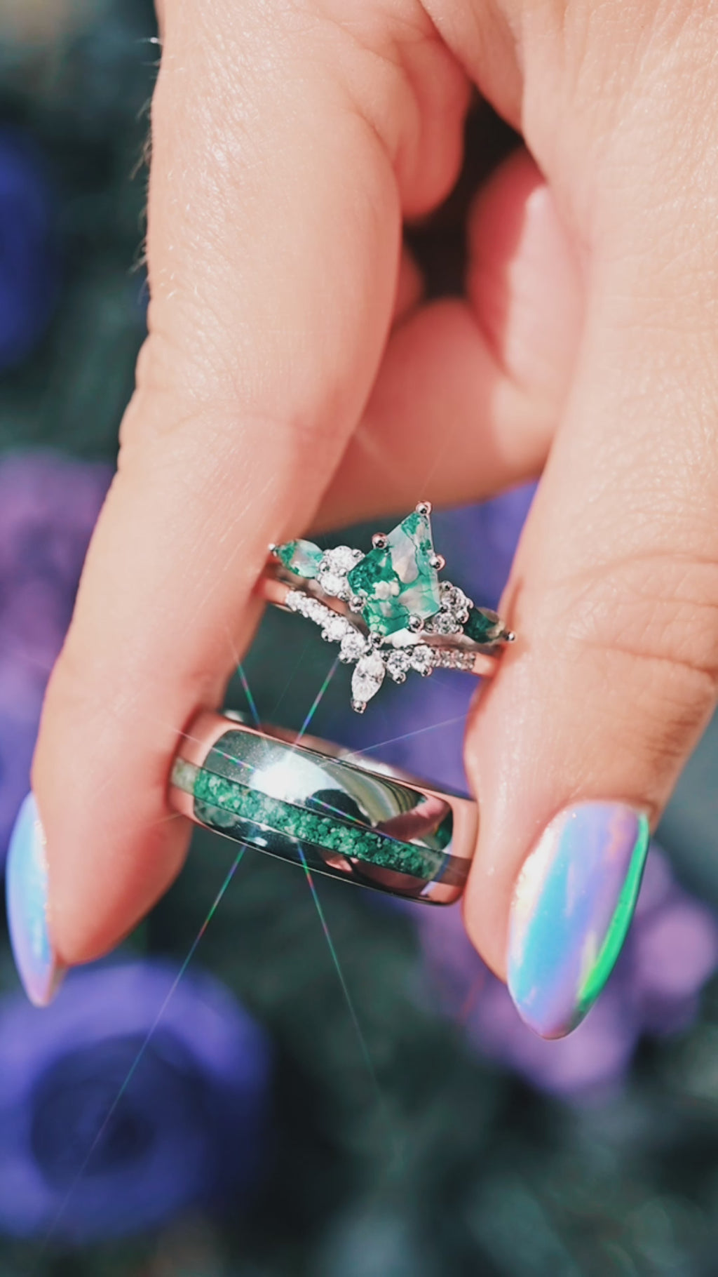 I was very excited to receive the rings, thank you for the beautiful presentation 💚💚 my fiance love the colors. Thank you for unforgettable experience.