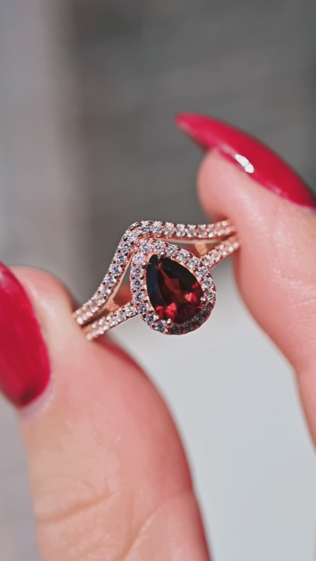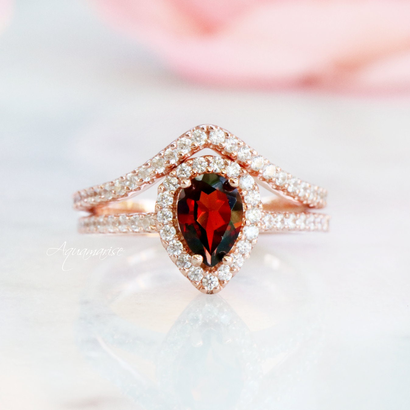 Emily Garnet Ring- 14K Rose Gold Vermeil