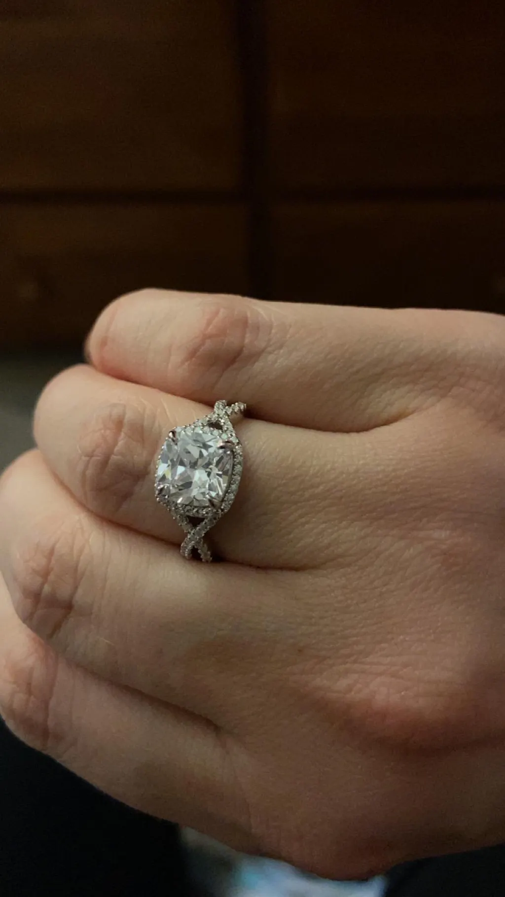 Flair Cushion Cut Simulated Diamond Engagement Ring in Sterling Silver