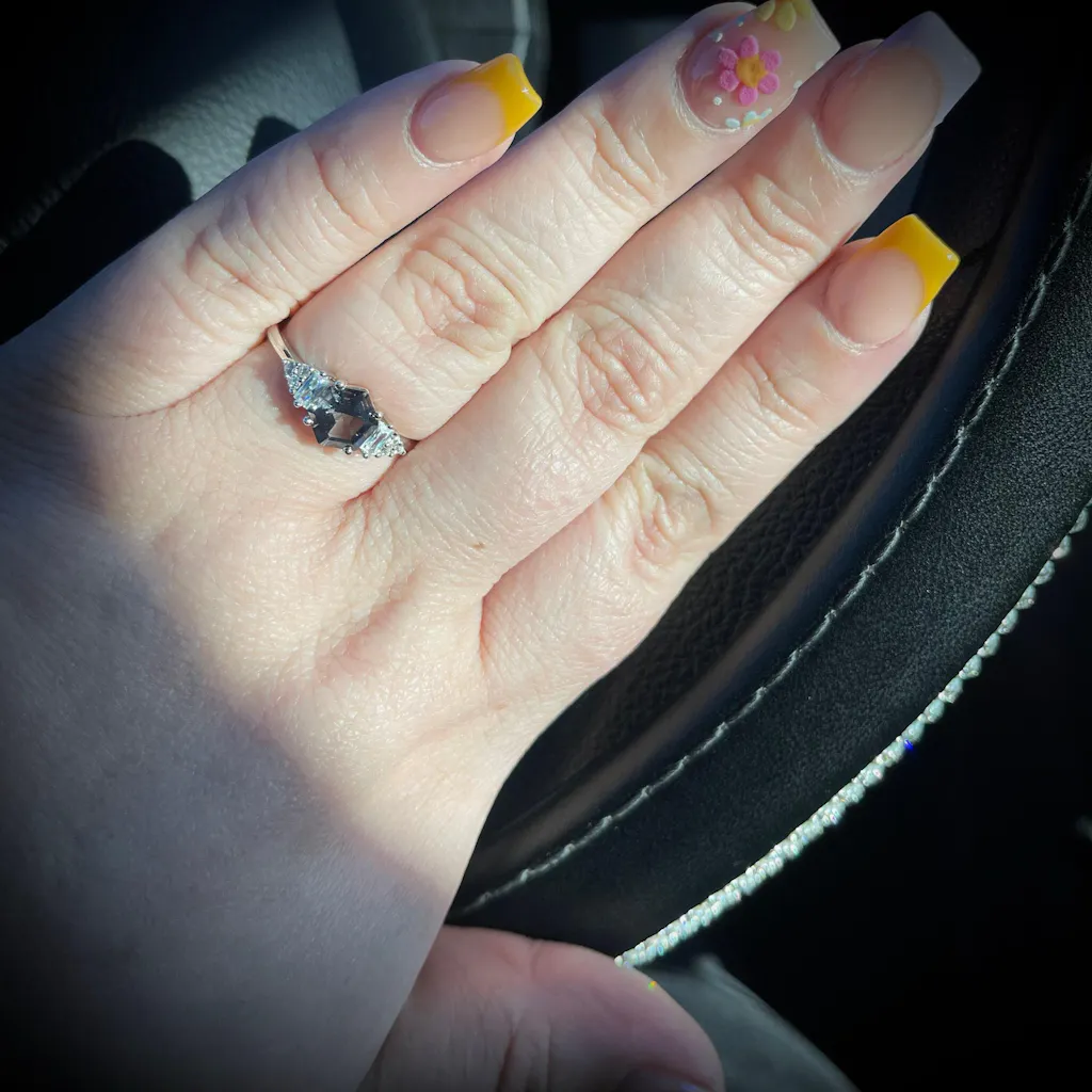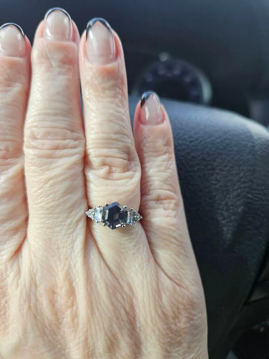 Hexagon Simulated Gray Diamond Ring in Sterling Silver