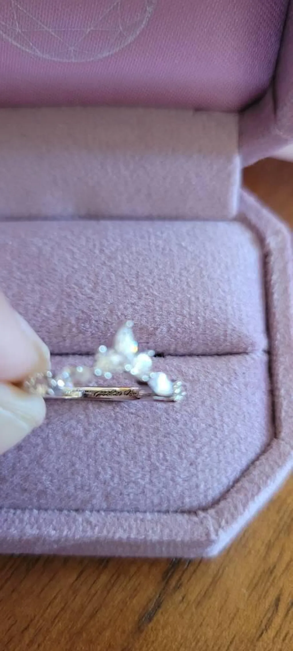 We’re so glad to hear that you love the ring! Thank you for your feedback about the font; we appreciate your input and will take it into consideration. Your satisfaction is important to us!