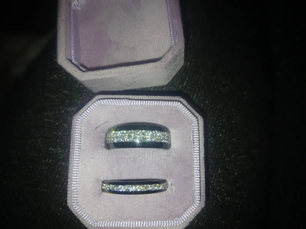 I received my ring set faster than I could have imagined! They are absolutely stunning, would most definitely purchase again and recommend! The quality is amazing for the price! Mine fits perfect but my partner hasn't tried his on yet, but I am confident if it doesn't fit the exchange will be a breeze. Thank you for a beautiful ring set!
