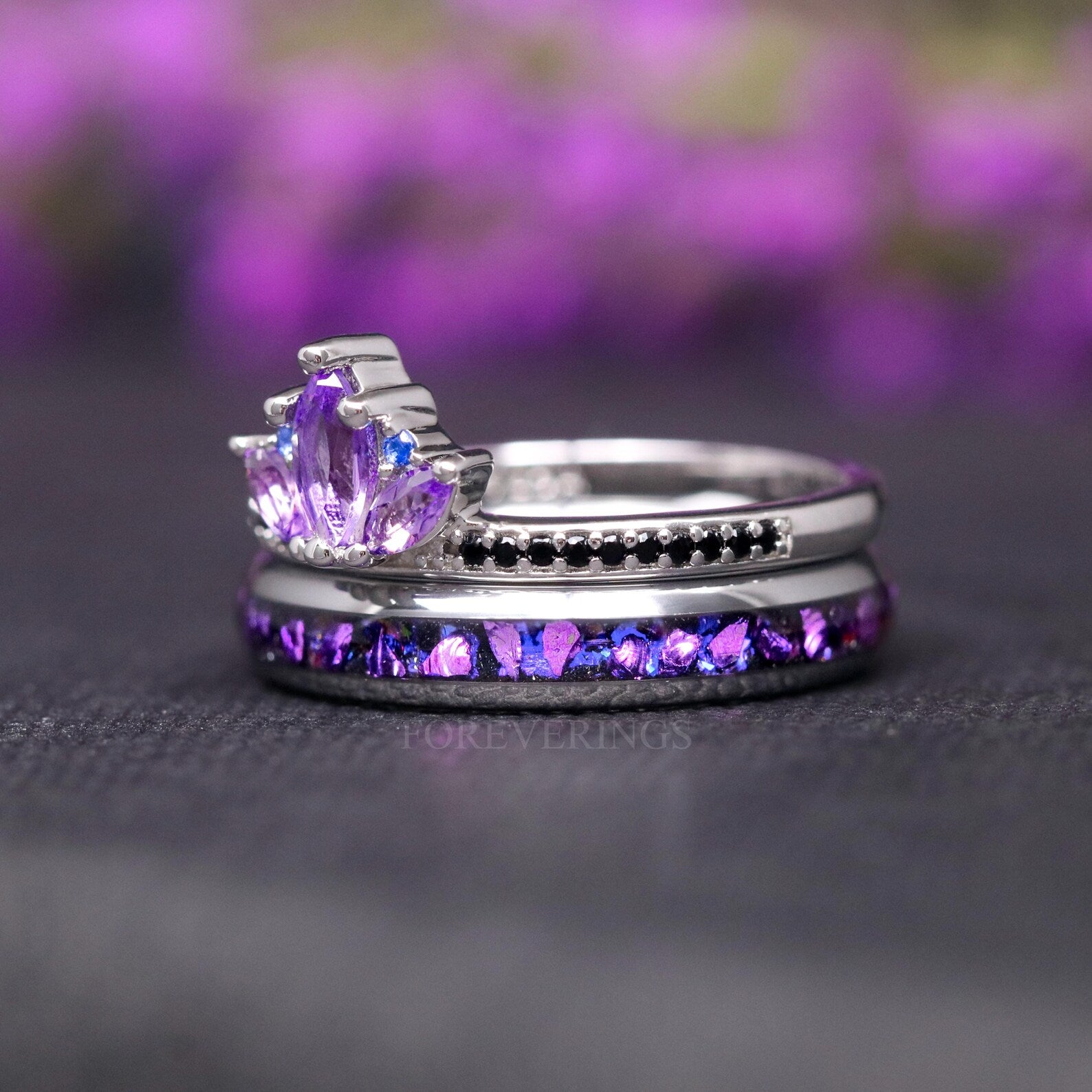 Amethyst Lotus Couples Ring Set