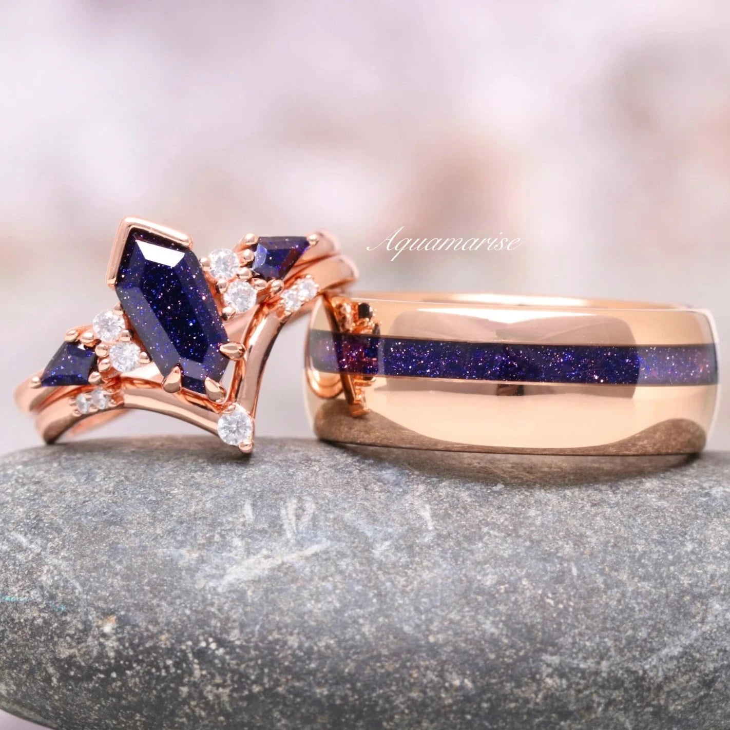 Galaxy Sandstone Starry Night Couples Ring Set