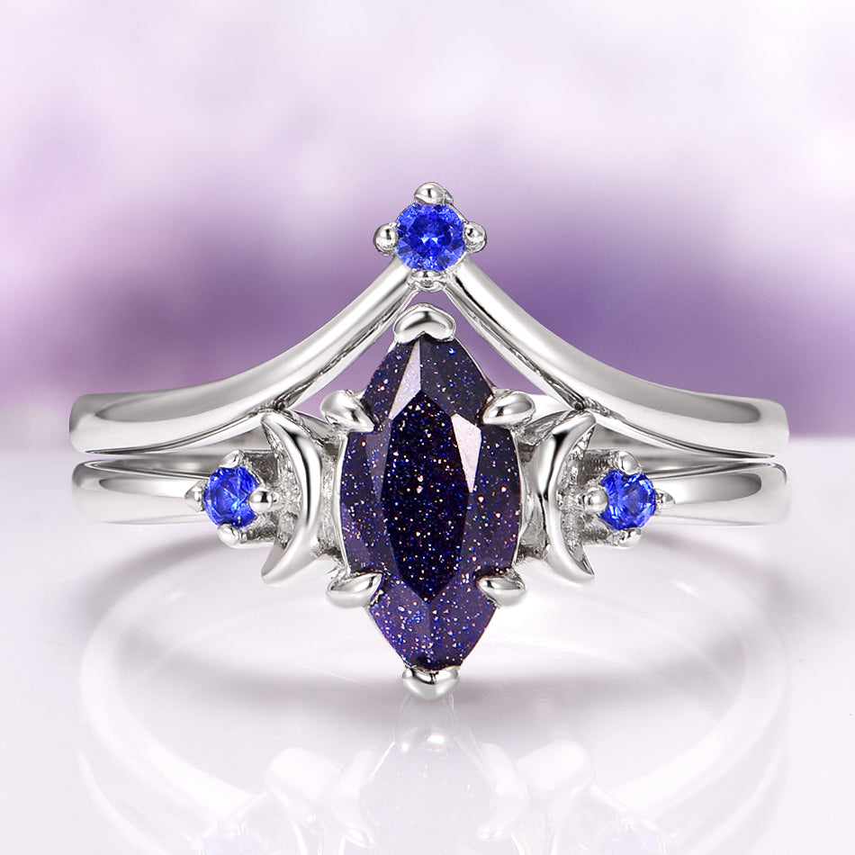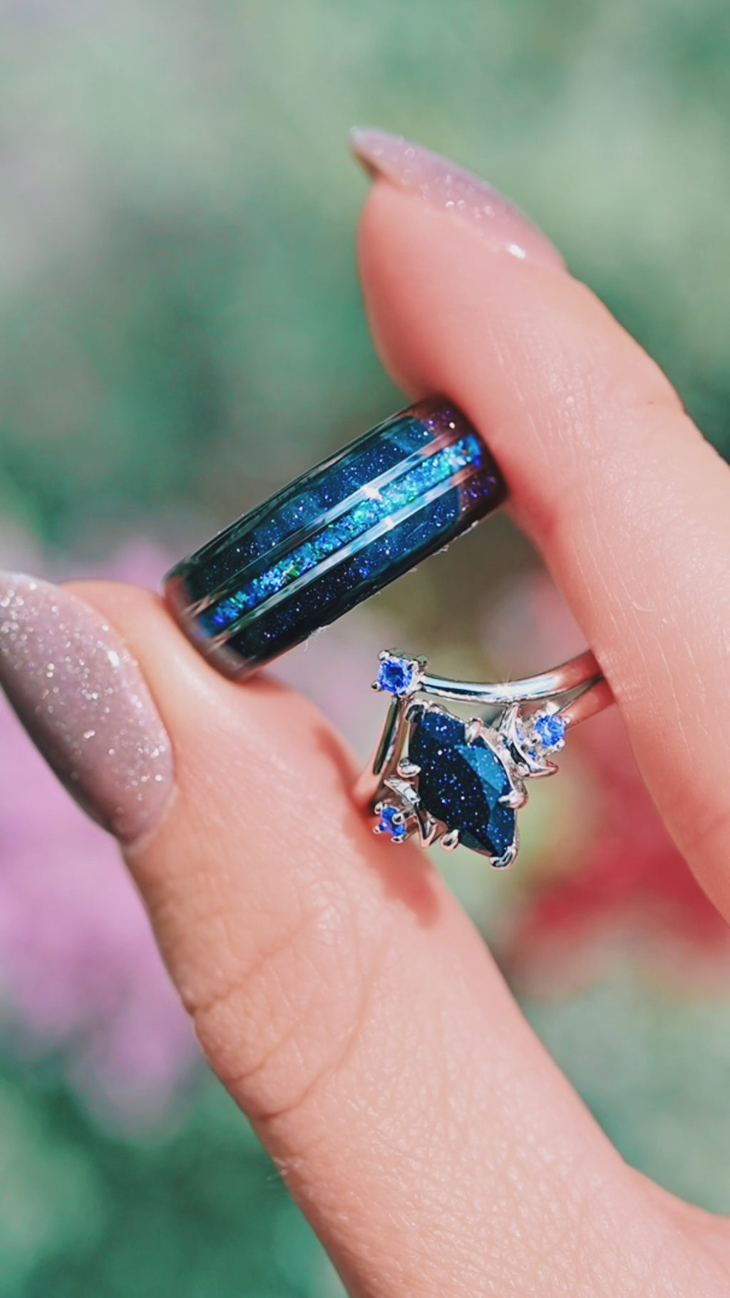 Starry Night, Meteorite & Blue Fire Opal Couples Ring Set