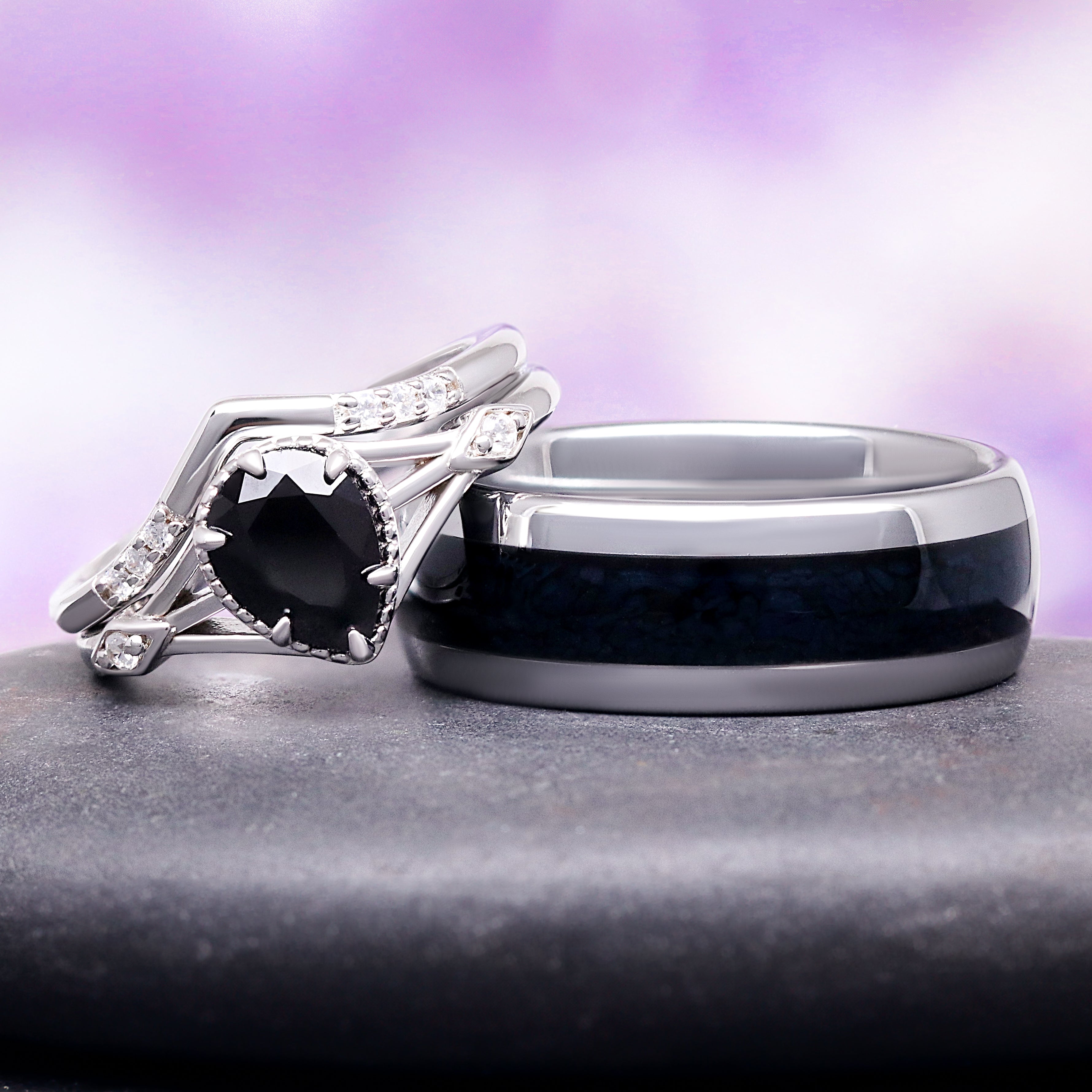 ► His Ring: Tungsten Carbide with Crushed Black Onyx Inlay