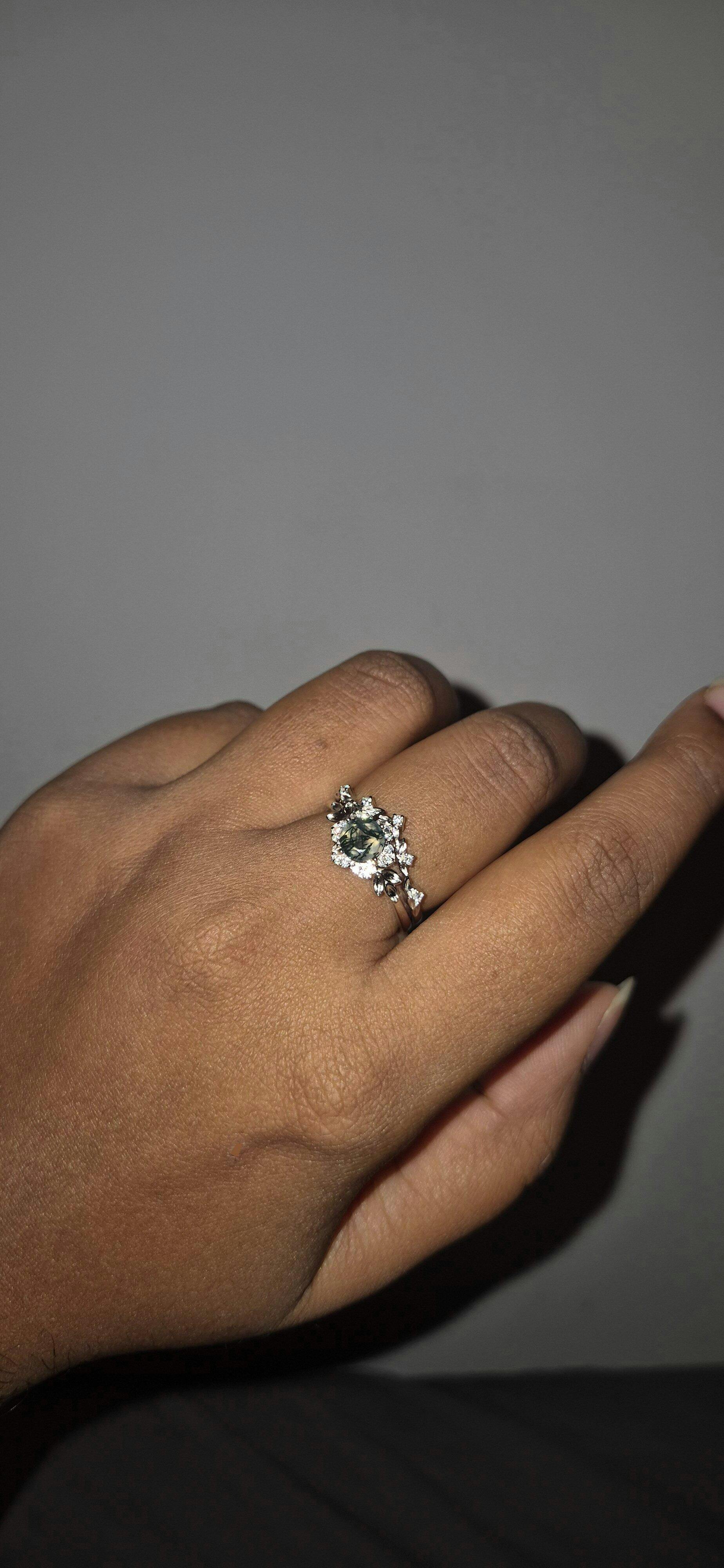 Moss Agate Fairy Leaf Ring Set in Sterling Silver
