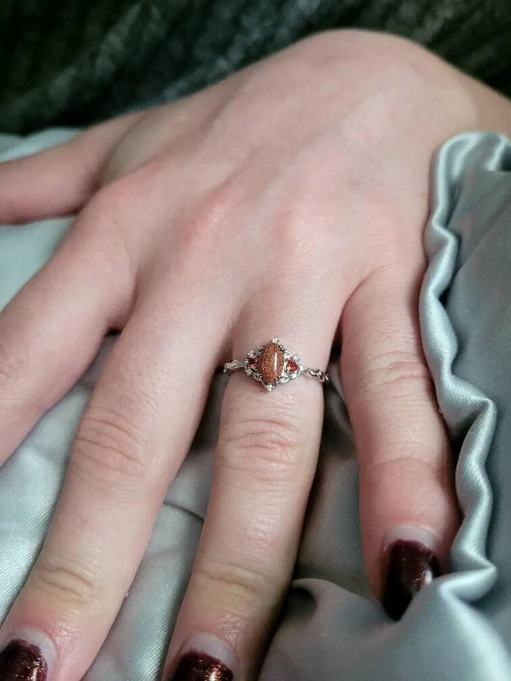 Esme Red Goldstone & Orange Sapphire Ring in Sterling Silver
