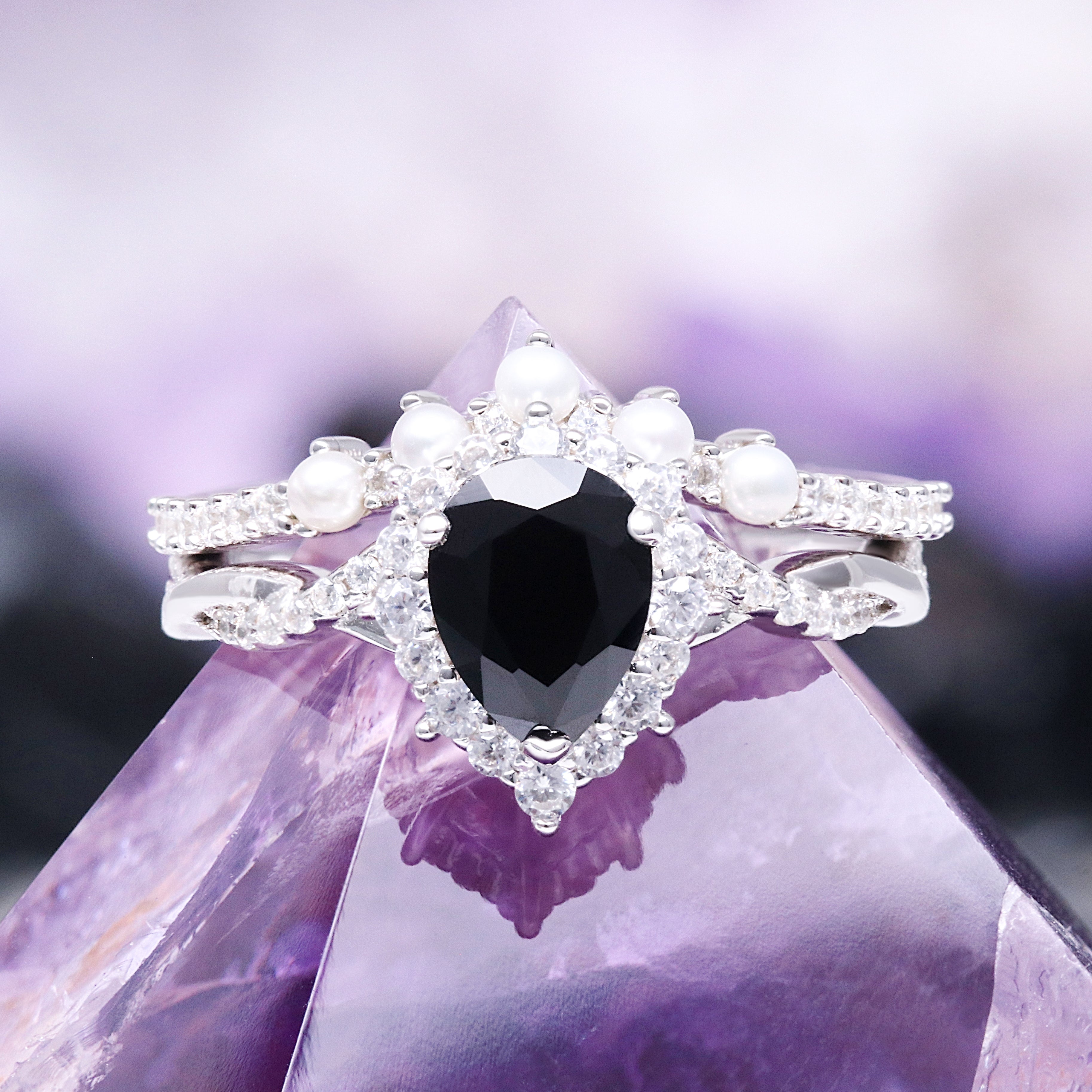 • Center Stone: Genuine Black Onyx (Pear Cut – 8.0 x 6.0 mm)