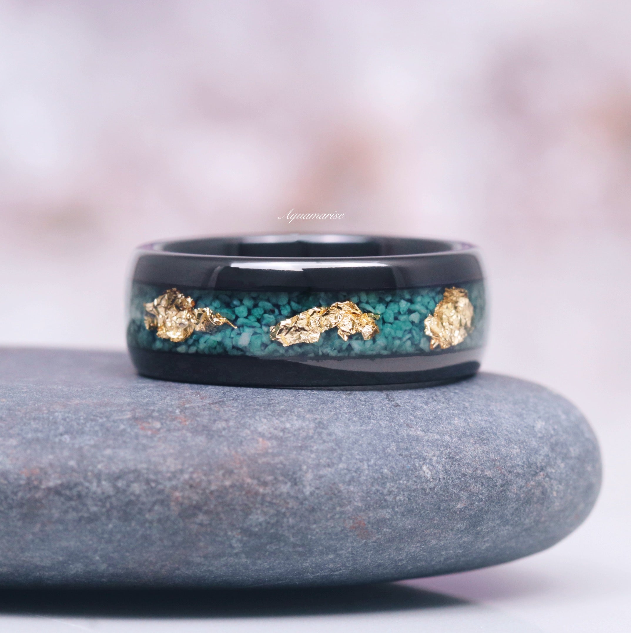 Green Moss Agate & Gold Leaf Couples Ring Set