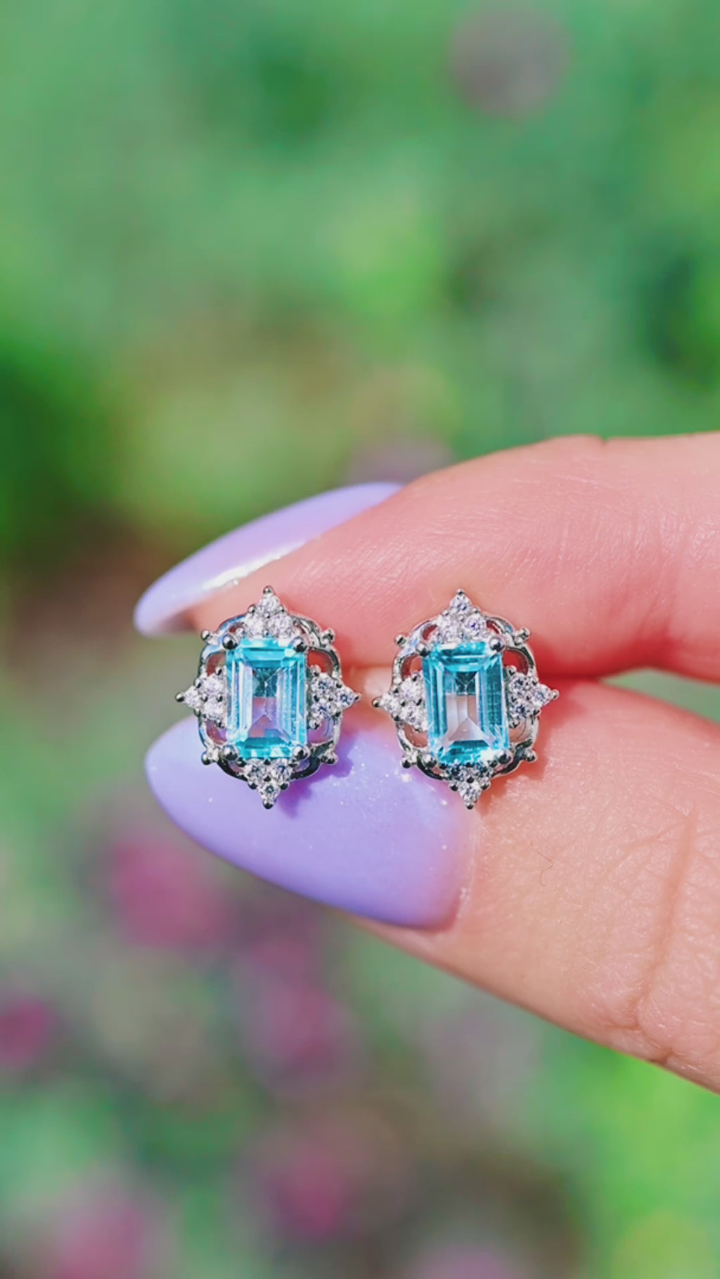 Add timeless elegance to your jewelry collection with these vintage inspired aquamarine earrings. Expertly crafted in 925 solid sterling silver, these earrings feature natural aquamarine gemstones in a refined emerald cut. Minimalist yet eye-catching, they are the perfect balance of simplicity and sophistication.