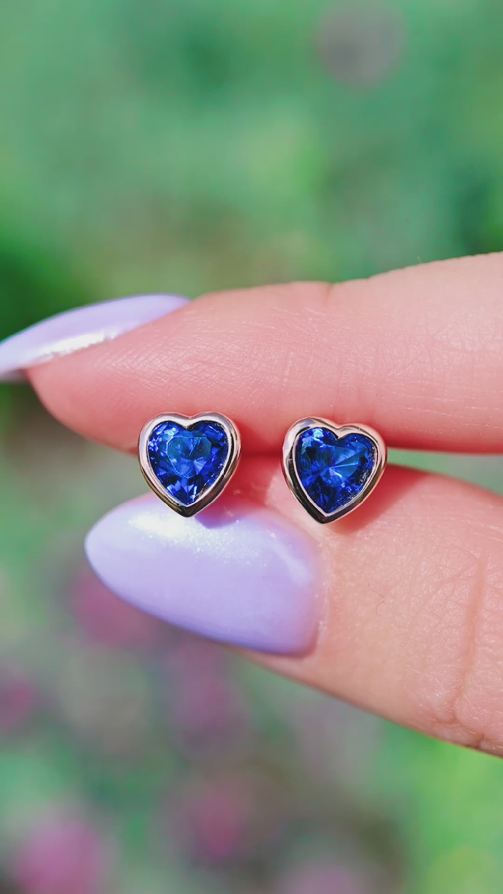 Heart Sapphire Stud Earrings in 14K Rose Gold Vermeil
