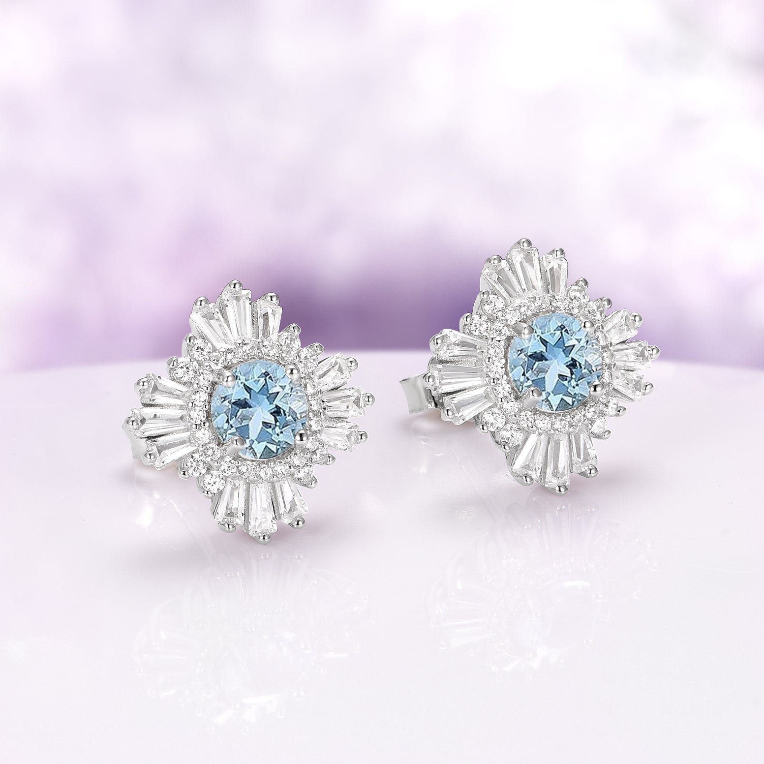 Add a touch of timeless elegance to your jewelry collection with these vintage-inspired aquamarine stud earrings, crafted in solid 925 sterling silver. Designed in a Gatsby-era Art Deco style, the Joelle earrings feature round lab-created aquamarine center stones, accented with shimmering simulated diamonds for extra sparkle. Lightweight and hypoallergenic, they make a stunning gift for birthdays, anniversaries, or bridal wear—especially for those born in March.