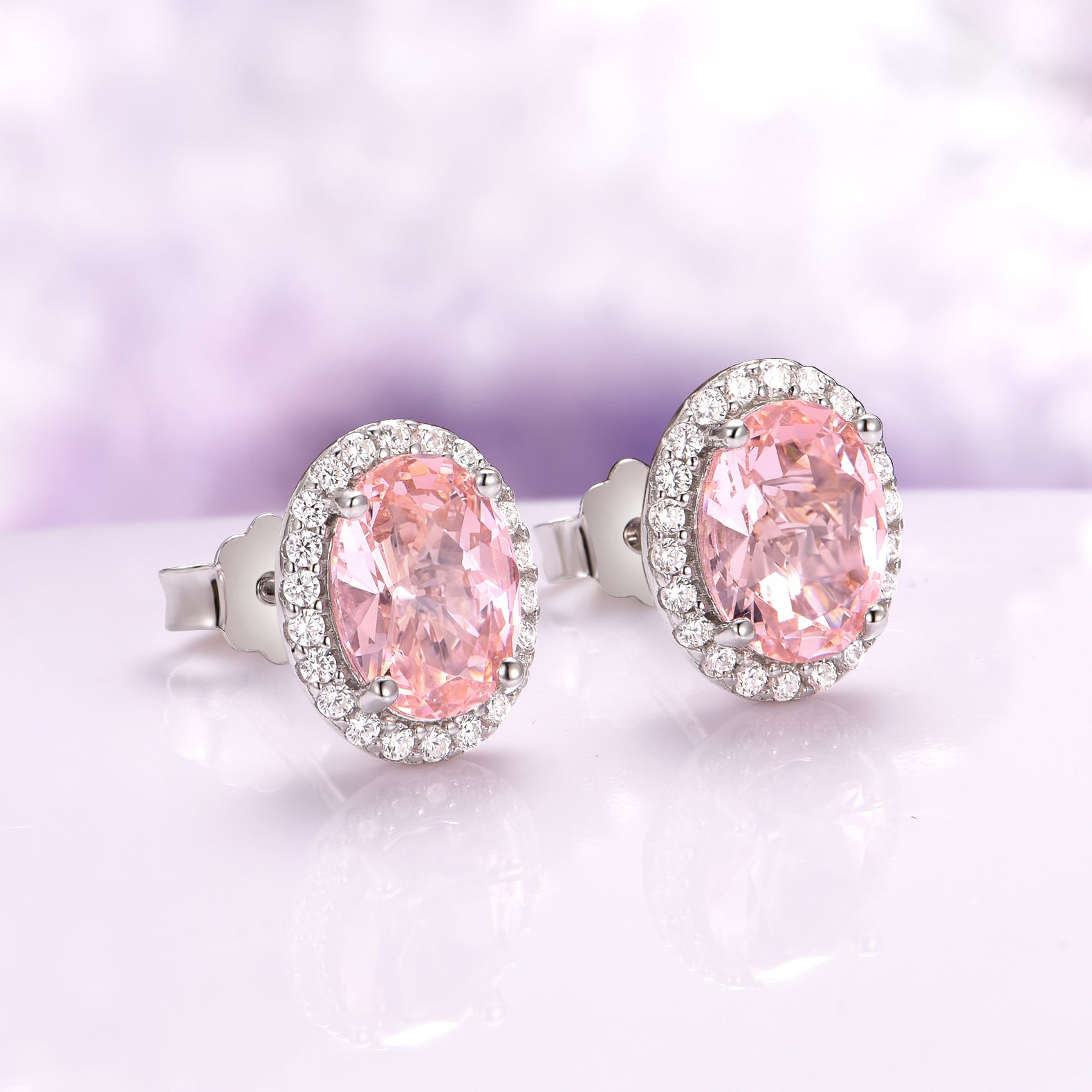 ► Each earring features an oval-cut morganite (6x8 mm) totaling approximately 3.2 carats, accented with sparkling simulated diamonds (CZ) for added brilliance.