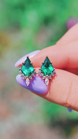 The minimalist design ensures the emeralds remain the focal point, offering a chic yet understated elegance. The kite cut adds a distinctive flair, making them stand out from traditional stud earrings while remaining effortlessly wearable.