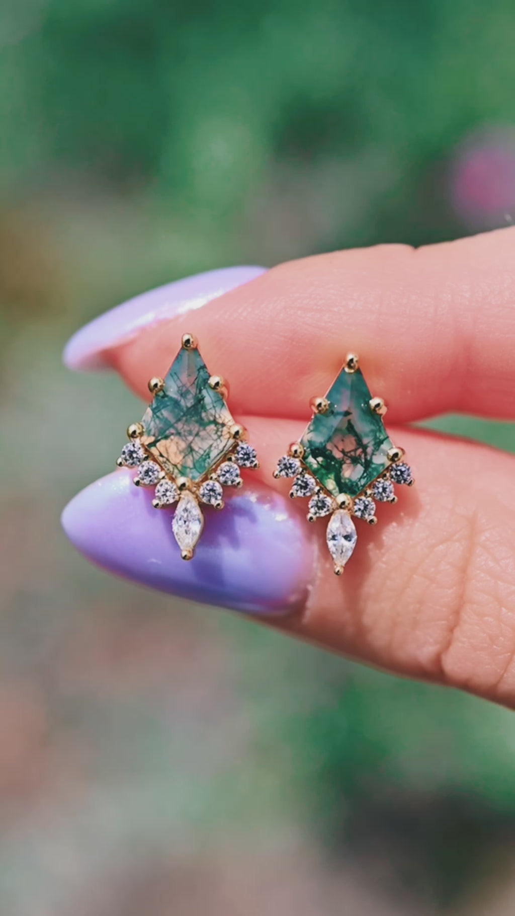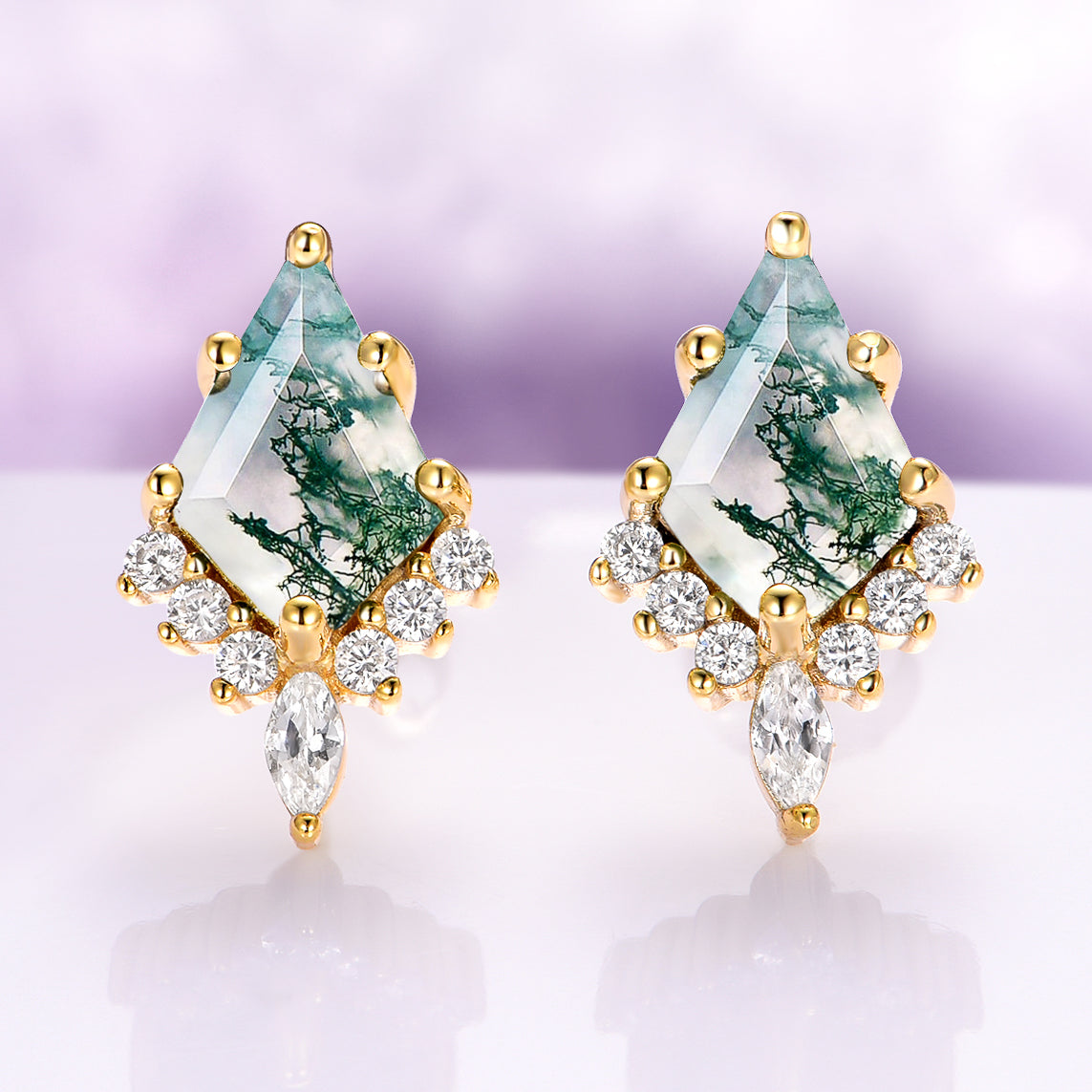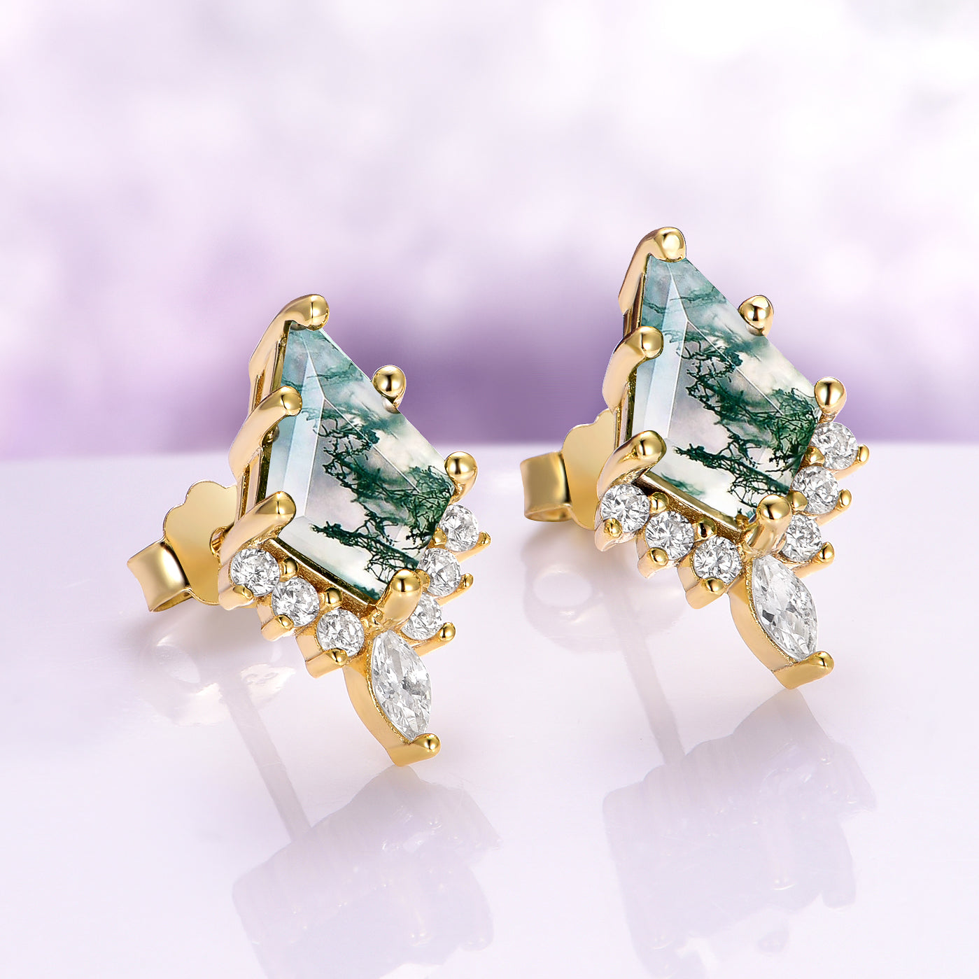 Skye Kite® Green Moss Agate Stud Earrings in 14K Yellow Gold Vermeil