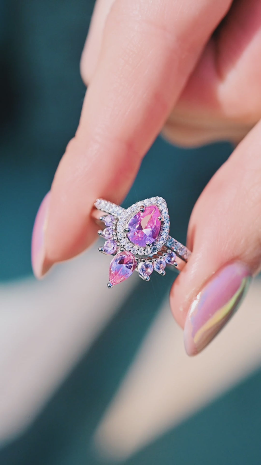 Whether you're celebrating a September birthday or simply drawn to the elegant sparkle of pink gemstones, this versatile ring set adds a graceful, feminine touch to any jewelry collection.