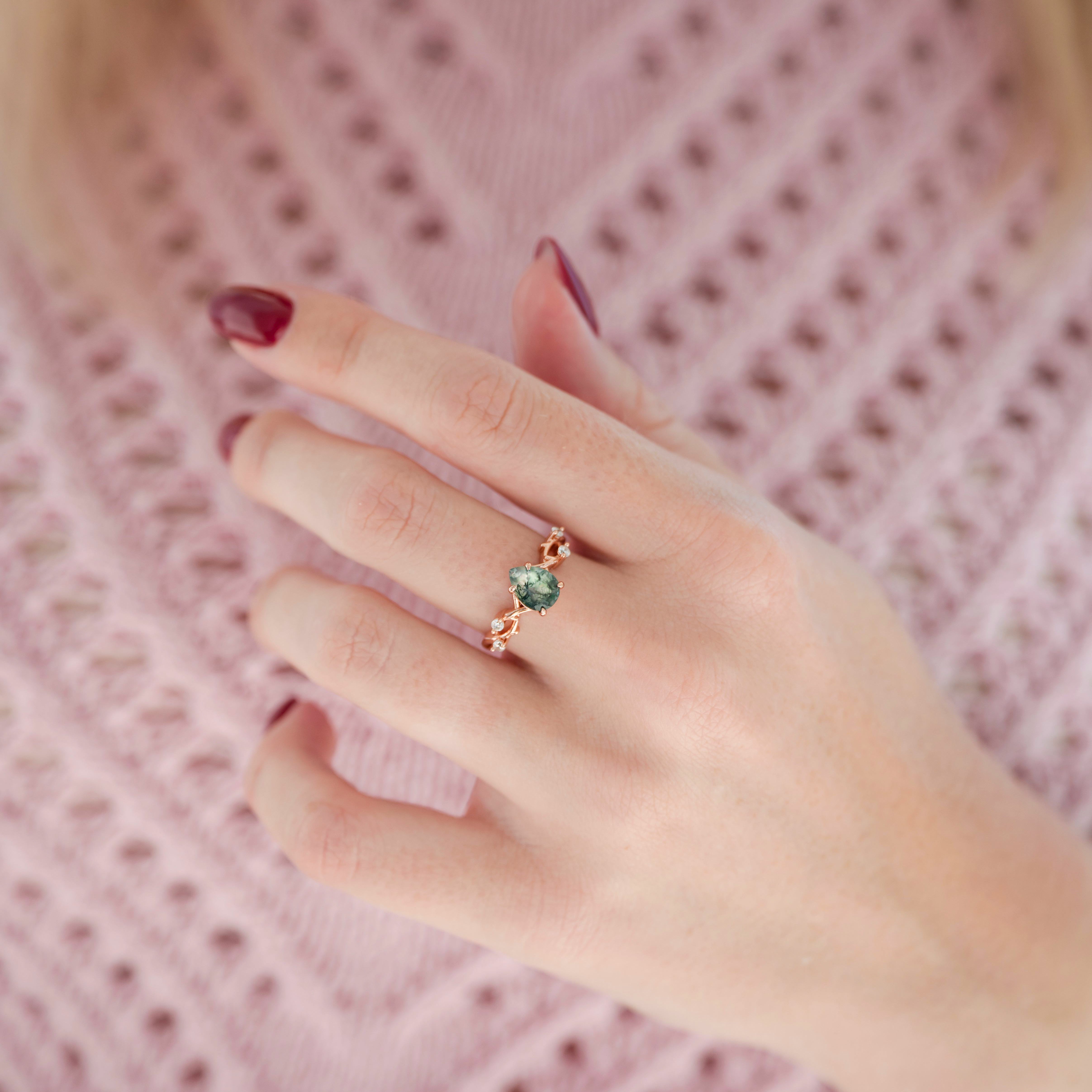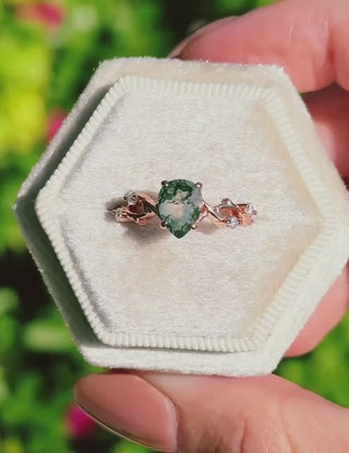 Green Moss Agate Twig Ring in 14K Rose Gold Vermeil
