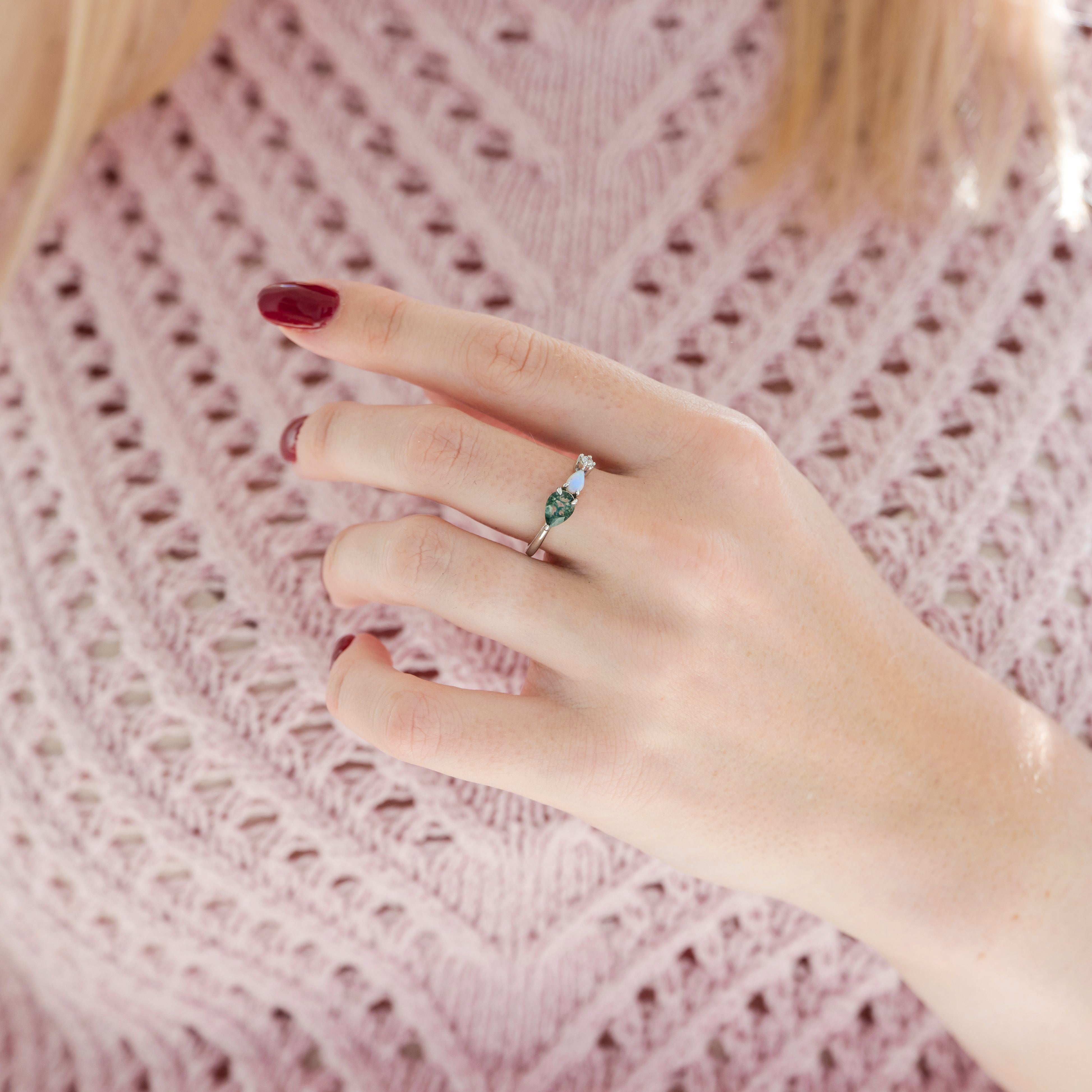 Gemstone type: Natural Green Moss Agate & Natural Australian White Fire Opal