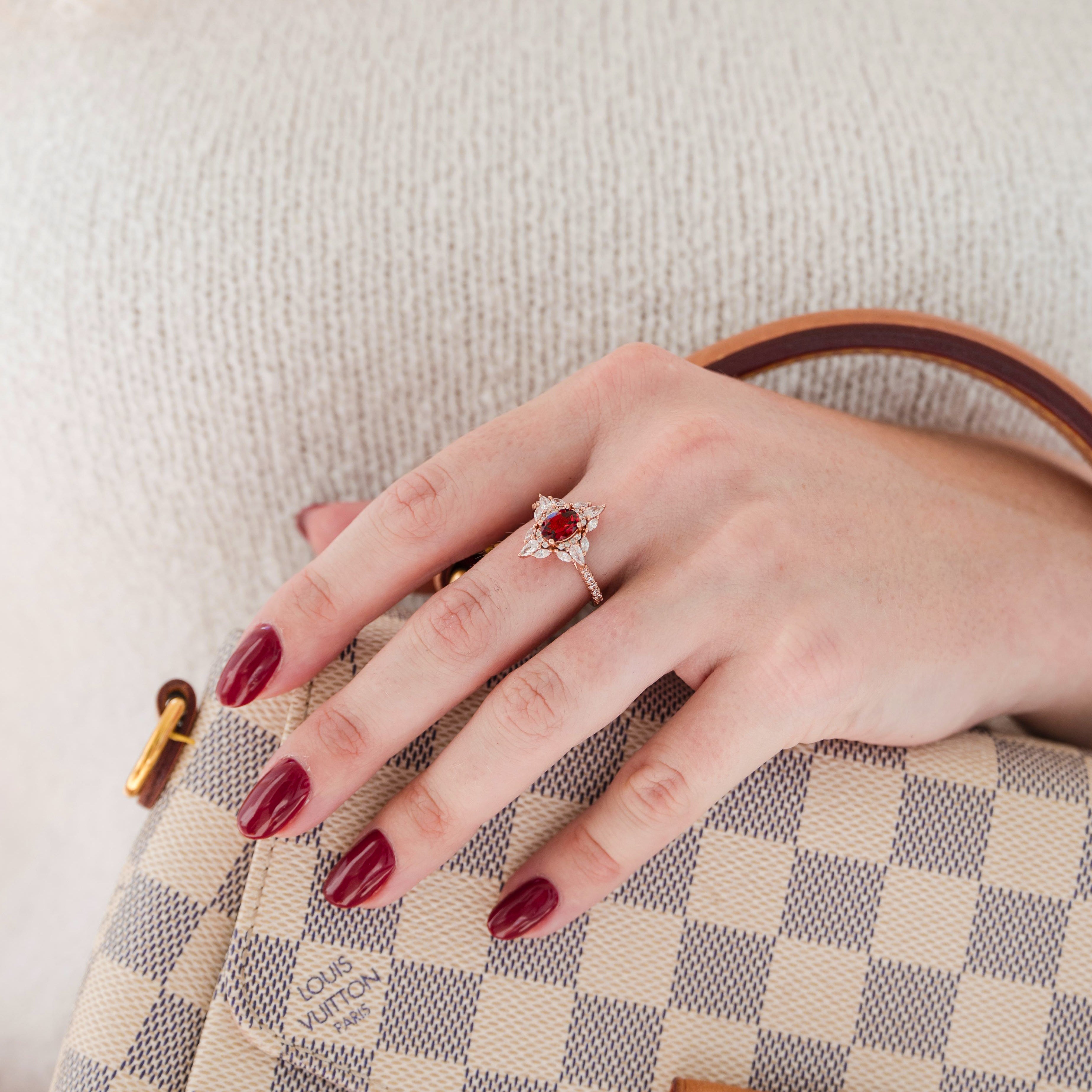 Stella Natural Red Garnet Ring- 14K Rose Gold Vermeil