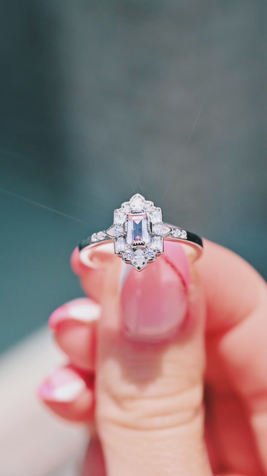 Step into a world of timeless elegance with our Art Deco Mosaic Morganite Mosaic Ring, exquisitely crafted in solid 14K white gold. This stunning piece features a delicate light pink morganite, meticulously cut and set in a mesmerizing mosaic pattern that exudes sophistication and grace. Inspired by the Art Deco era, its geometric lines and intricate detailing enhance the romantic allure of the morganite, which is elegantly framed by a halo of sparkling accents that catch the light from every angle. Whether as an engagement ring or a meaningful milestone gift, this ring is a testament to enduring love, blending vintage charm with modern craftsmanship for a piece that will be cherished for a lifetime.