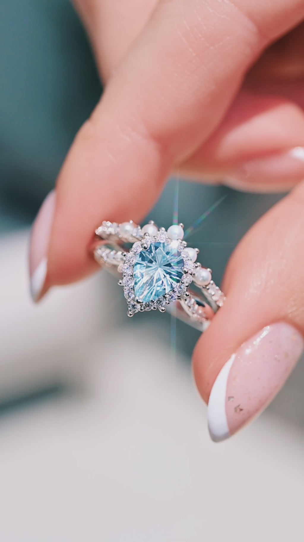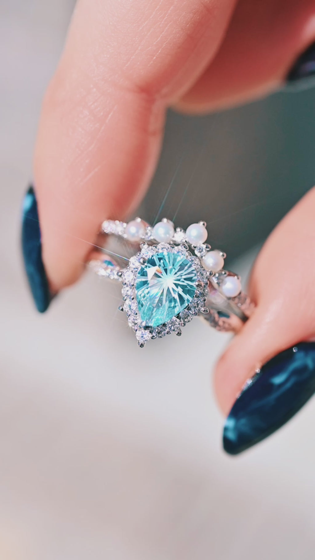 ►Paired with a genuine natural freshwater pearl enchanter band, this set captures the essence of whimsy and elegance. Pearls are timeless symbols of wisdom and grace, a meaningful addition that deepens the sentiment of the ring. The combination of aquamarine and pearl evokes an ethereal, fairy-core aesthetic, perfect for those who dream beyond the ordinary.