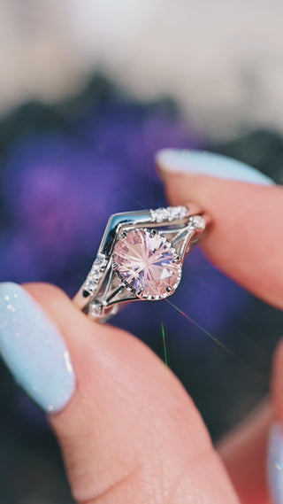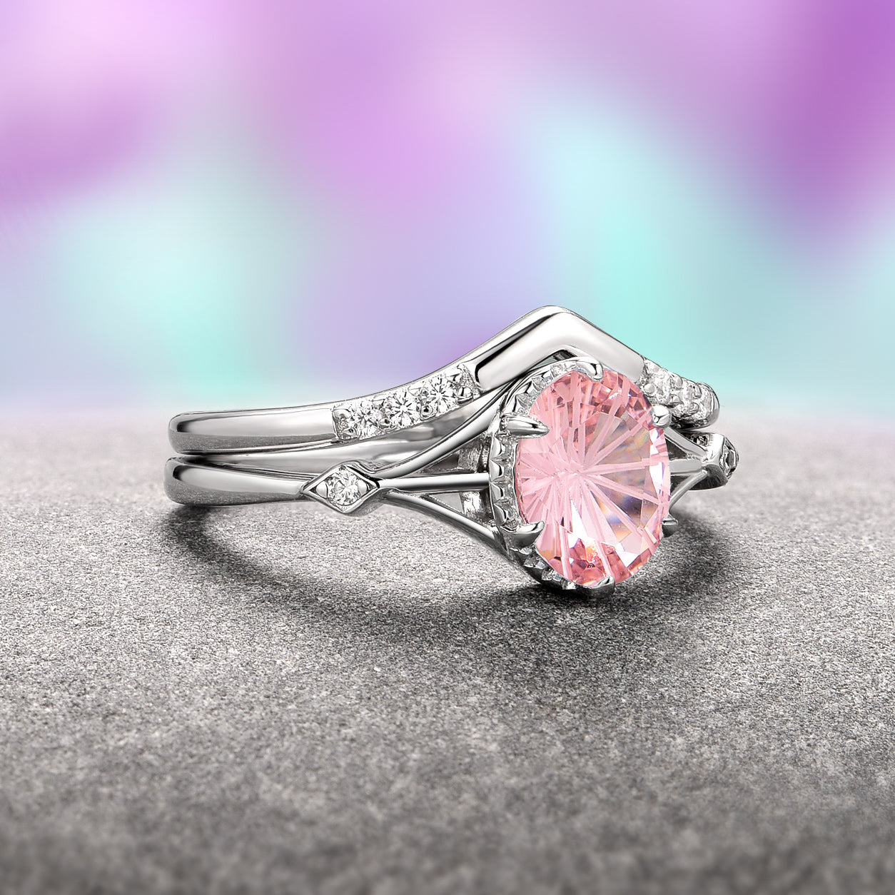 Celtic Morganite Ring Set- 14K White Gold (Fantasy Cut)