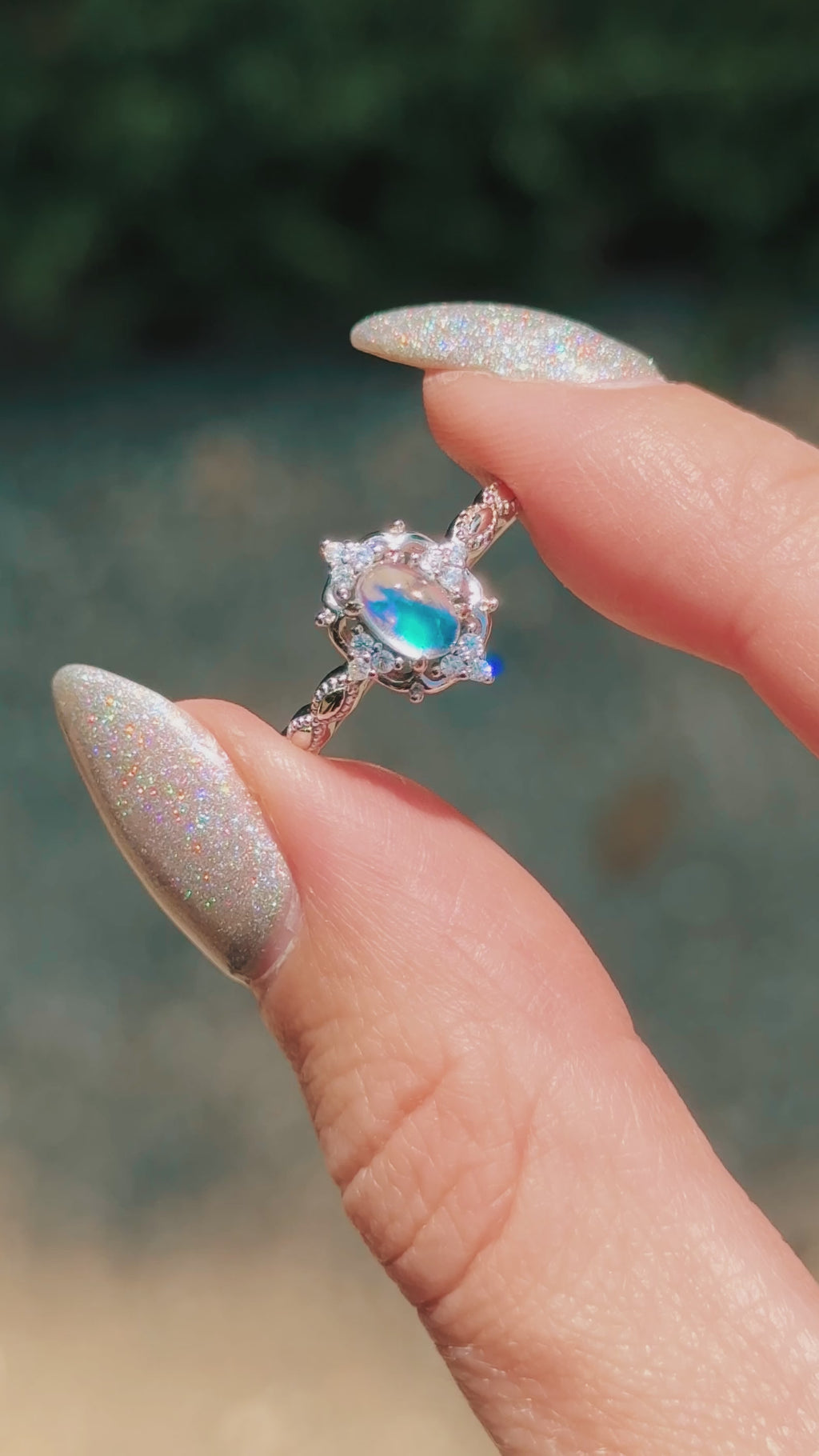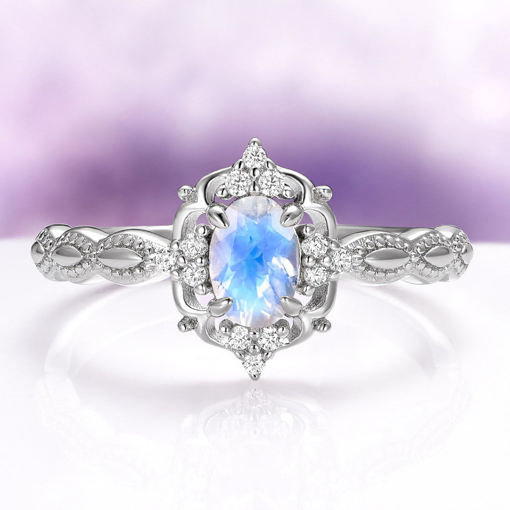 Claire Rainbow Moonstone Engagement Ring in 14K White Gold