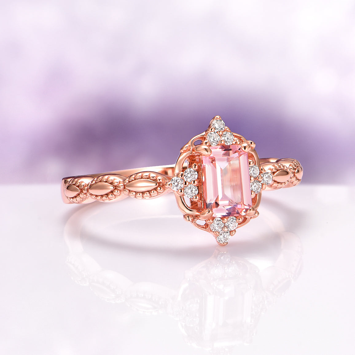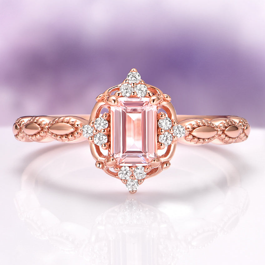Claire Vintage Morganite Engagement Ring in 14K Solid Rose Gold