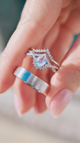 Alice Rainbow Moonstone Couples Ring Set