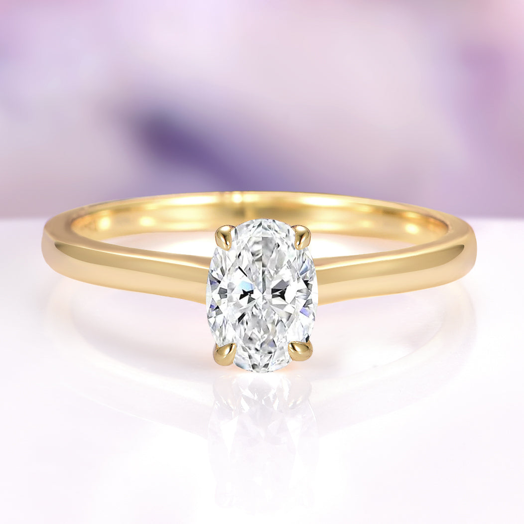 ► Metal Type: 14K Solid Yellow Gold (also available in 14K White or Rose Gold upon request; 18K upgrade available) ► Setting: Classic Four-Prong Solitaire ► Band Width: Approx. 2mm ► Center Stone: Lab-Grown Diamond (IGI Certified) ► Shape/Cut: Oval ► Gem Size: 5.0 x 7.0 mm (Approx.) ► Carat Weight: ~1 ct (May vary slightly) ► Color: D ► Clarity: VVS ► Hardness: 10 (Mohs Scale) ► Matching Band: Sold Separately ► Available Sizes: US 3–10 (Custom sizes available upon request) ► Engraving: Complimentary (Limit 16 Characters) ► Made to Order: Please allow 3–5 weeks for crafting and finishing