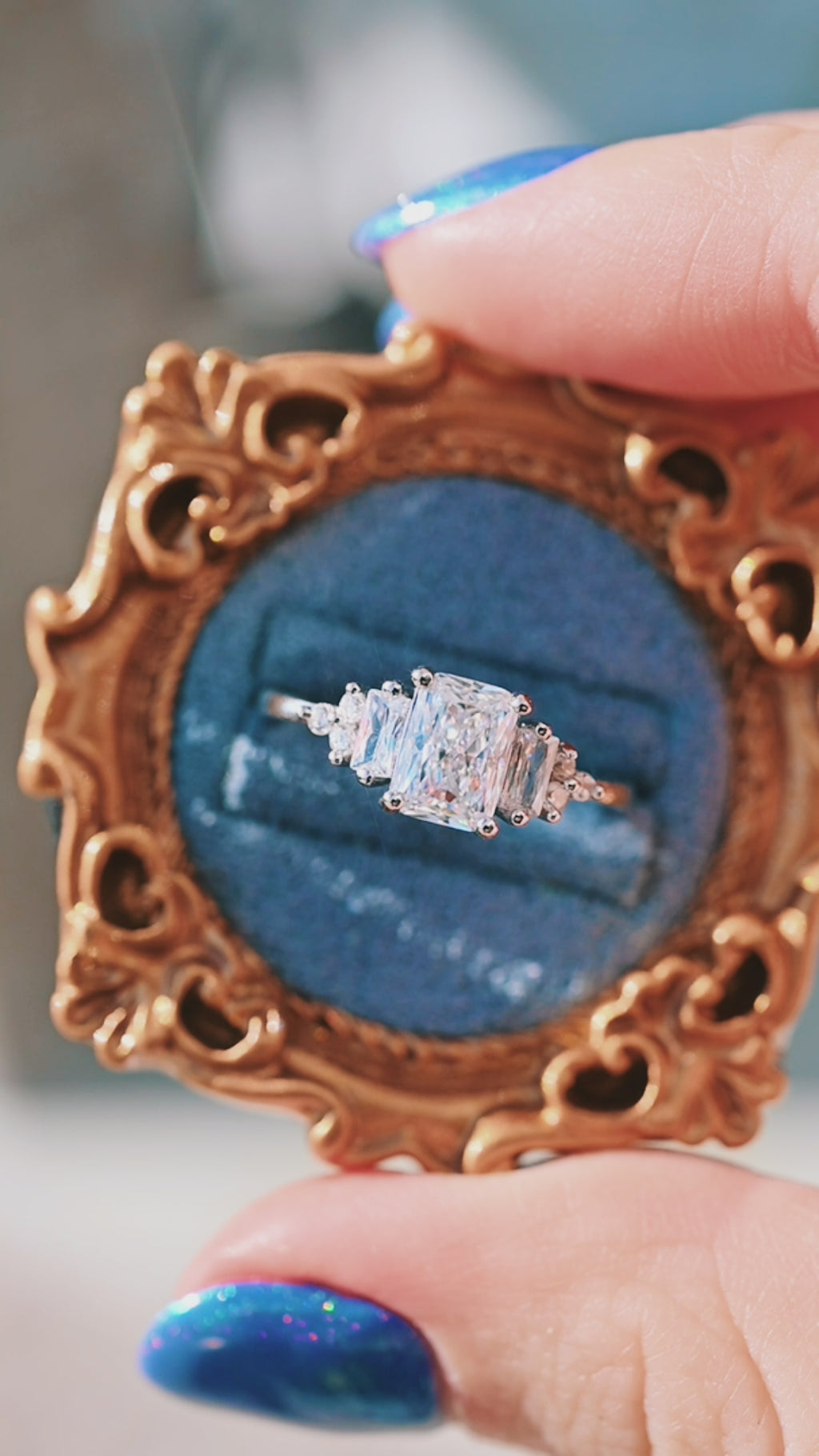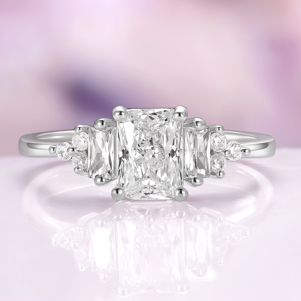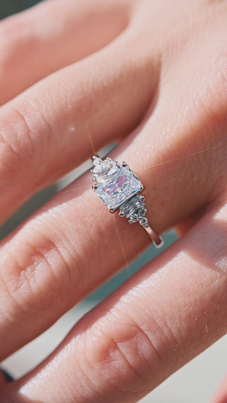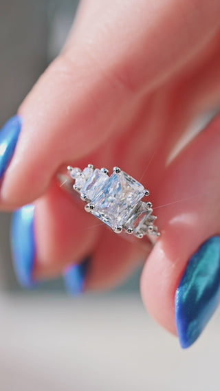 Timeless sophistication meets modern sustainability in this Elegant Emerald Cut Lab-Grown Diamond Engagement Ring, expertly crafted in 14K solid white gold. Featuring a breathtaking emerald-cut center diamond complemented by sparkling lab-grown accent diamonds, this three-stone silhouette captures refined elegance with exceptional brilliance. Ethically sourced, meticulously crafted, and forever classic—this ring is designed to symbolize a love that shines endlessly.