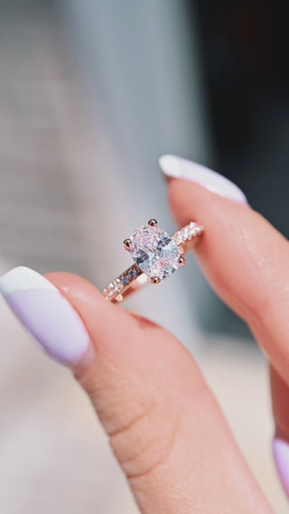 This classic engagement ring features shimmering scalloped pavé lab-grown diamonds that extend half of the way around the ring. A lab-grown diamond-encrusted gallery makes this ring truly spectacular.