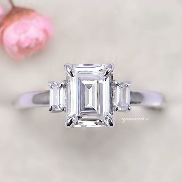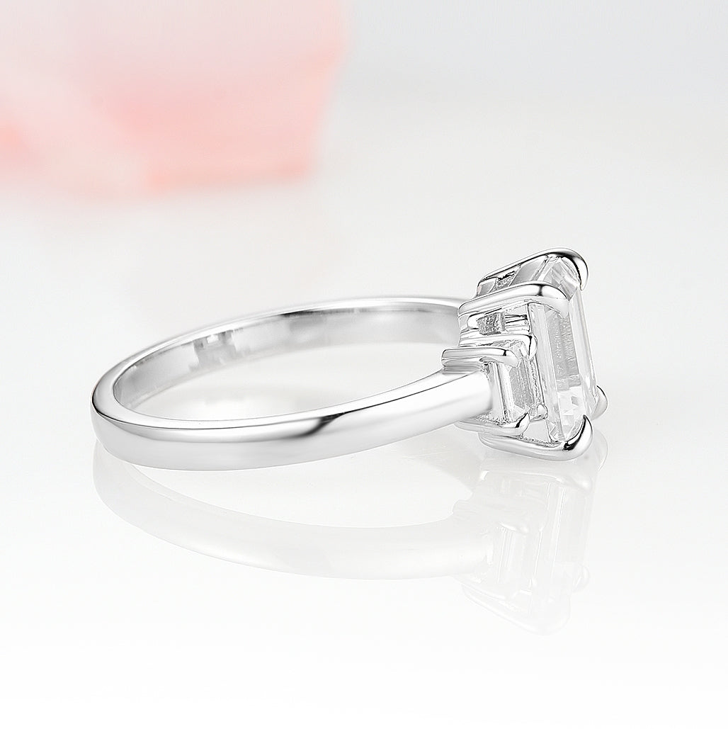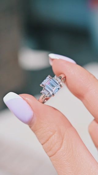 Our Three Stone engagement ring features two exquisite emerald cut side stones that enhance the brilliance of the emerald cut center stone, telling the past, present and future tale of your relationship. With secure, contoured cusps and a signature low-set sling, this setting lets your story shine.