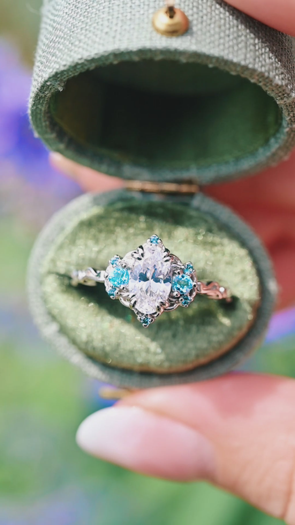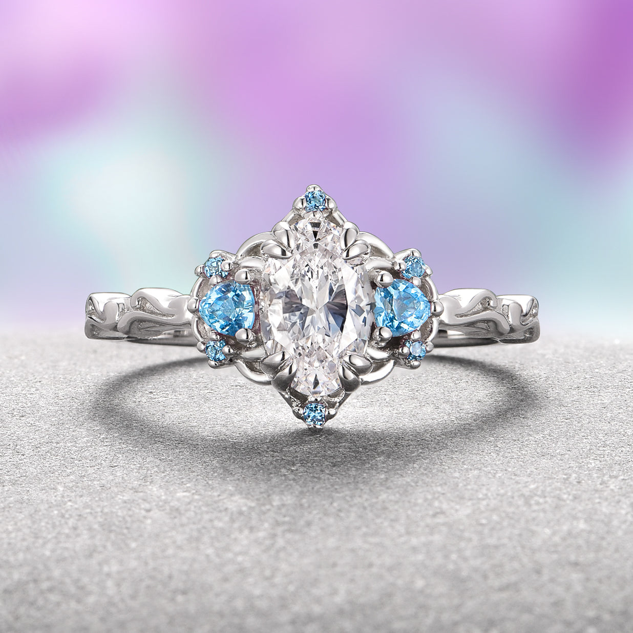 Esme Lab-Grown Diamond & Sky Blue Topaz Ring- 14K White Gold (IGI Certified)