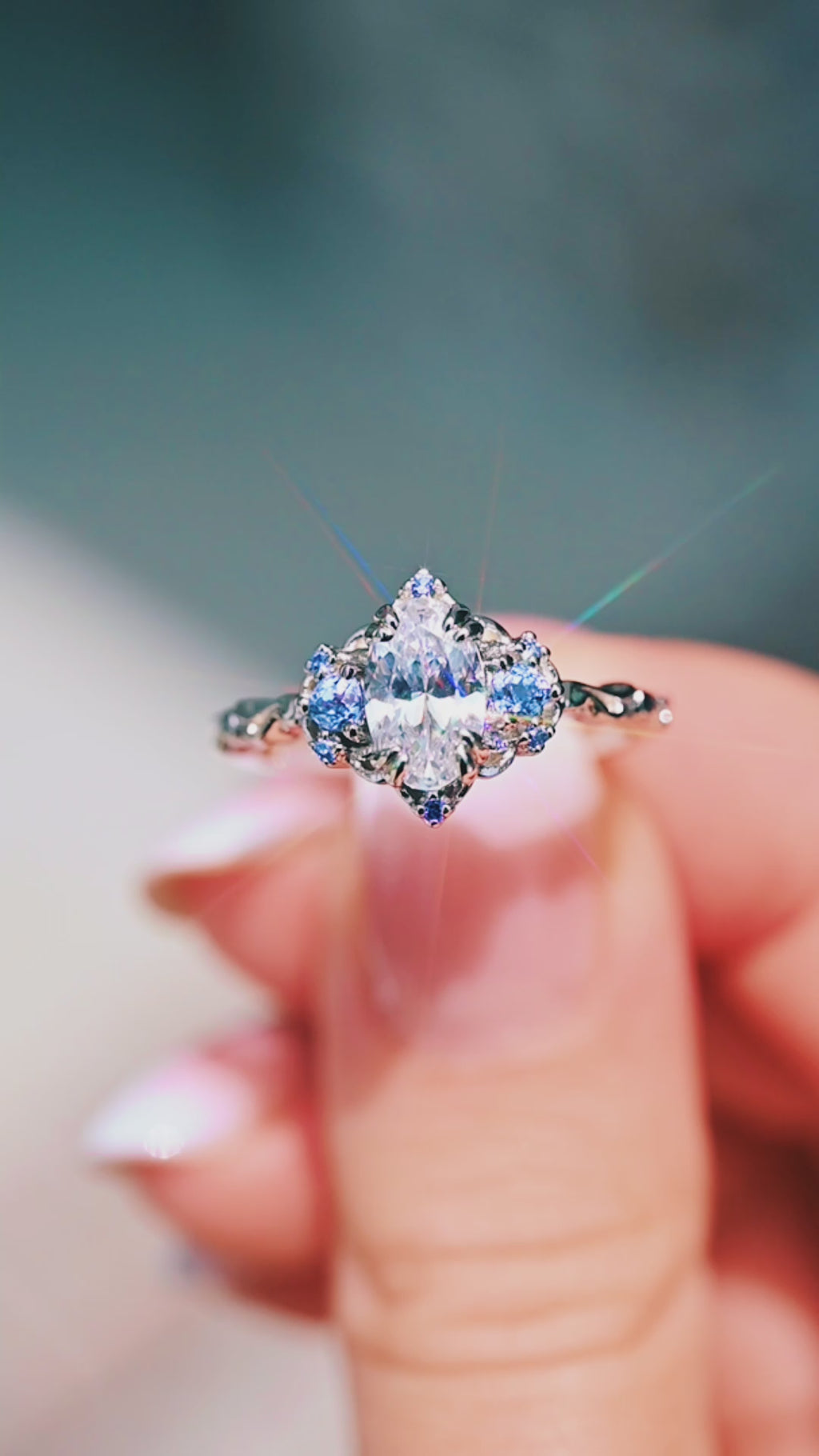►The lab-grown diamond offers exceptional brilliance and ethical craftsmanship, symbolizing purity, strength, and enduring love. Complementing it, the rich violet-blue tanzanite accents bring a luxurious touch, cherished for their symbolism of transformation, intuition, and emotional depth. This enchanting design is ideal for lovers of fantasy-inspired jewelry, fairycore engagement rings, and distinctive gemstone jewelry. Whether chosen as a unique engagement ring, promise ring, or special gift, the Esme Ring infuses every love story with luminous beauty and magical charm.