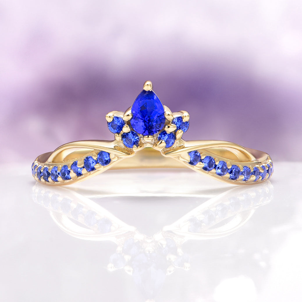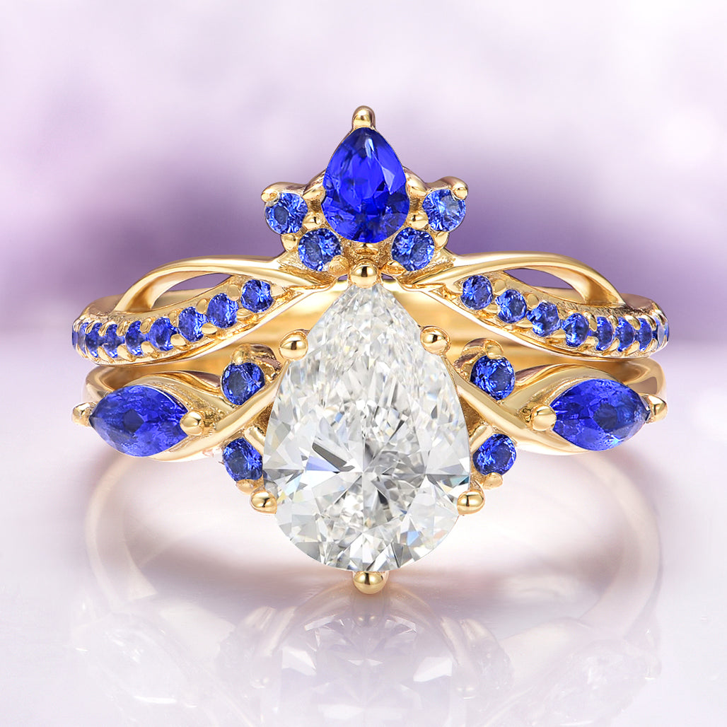 Feyra Lab-Grown Diamond and Blue Sapphire Engagement Ring Set in 14K Solid Yellow Gold (IGI Certified)