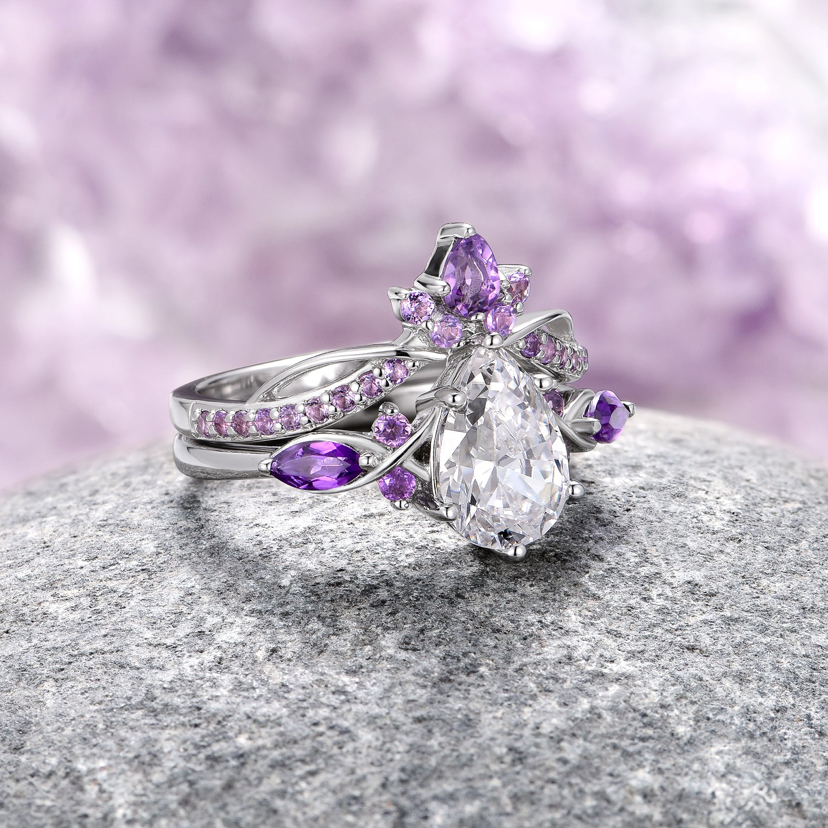 Fairy Amethyst & Lab-Grown Diamond Engagement Ring Set