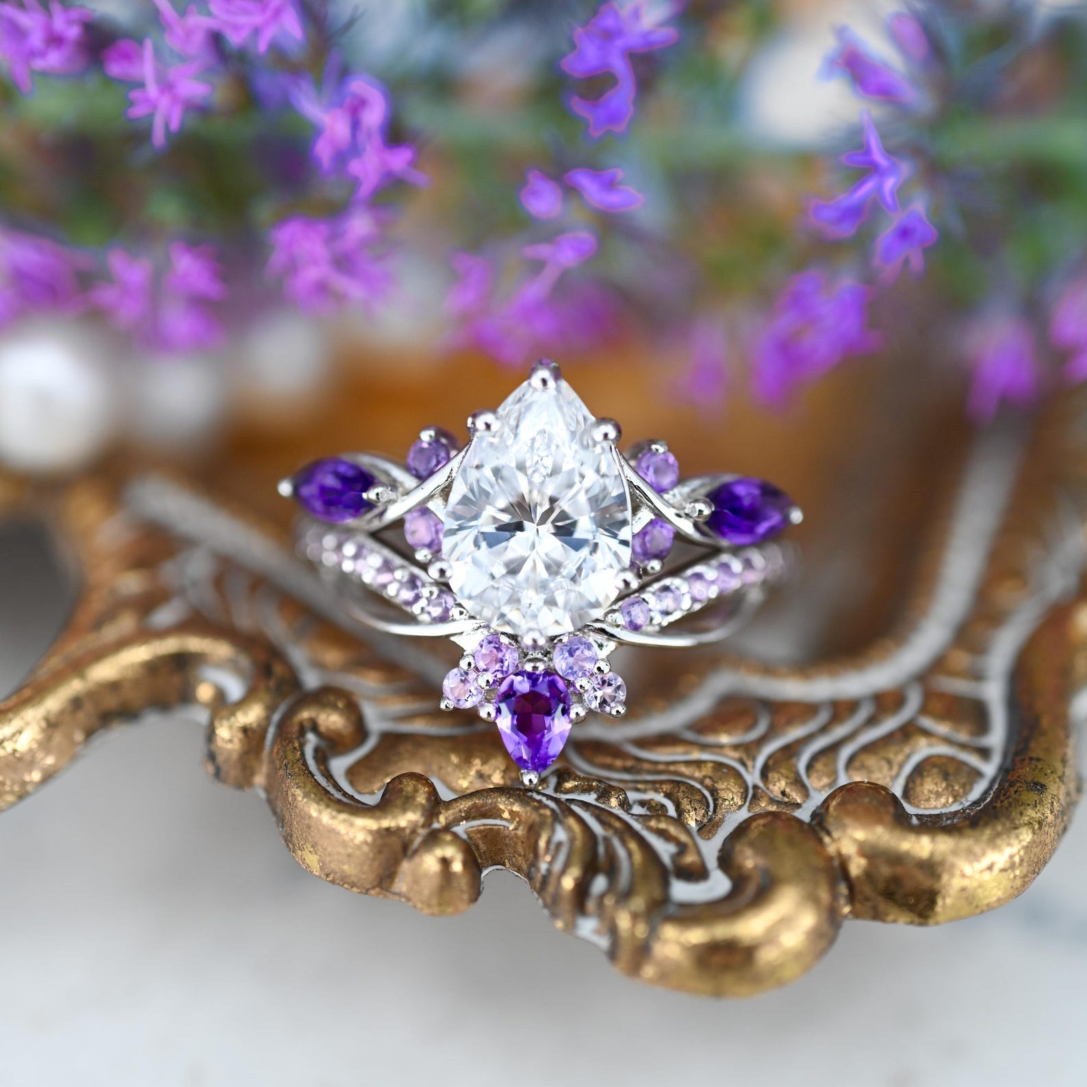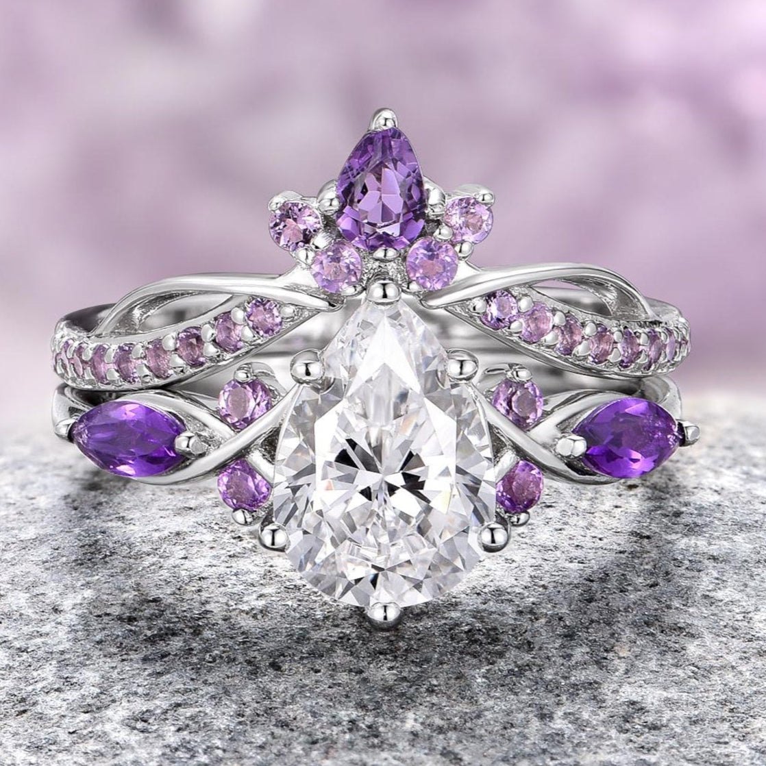 ►Step into a world of enchantment with this Fairy Amethyst & Lab-Grown Diamond Engagement Ring Set in 14K white gold. Designed for the woman who dreams of magic and elegance, this set is a perfect blend of whimsy and timeless beauty.