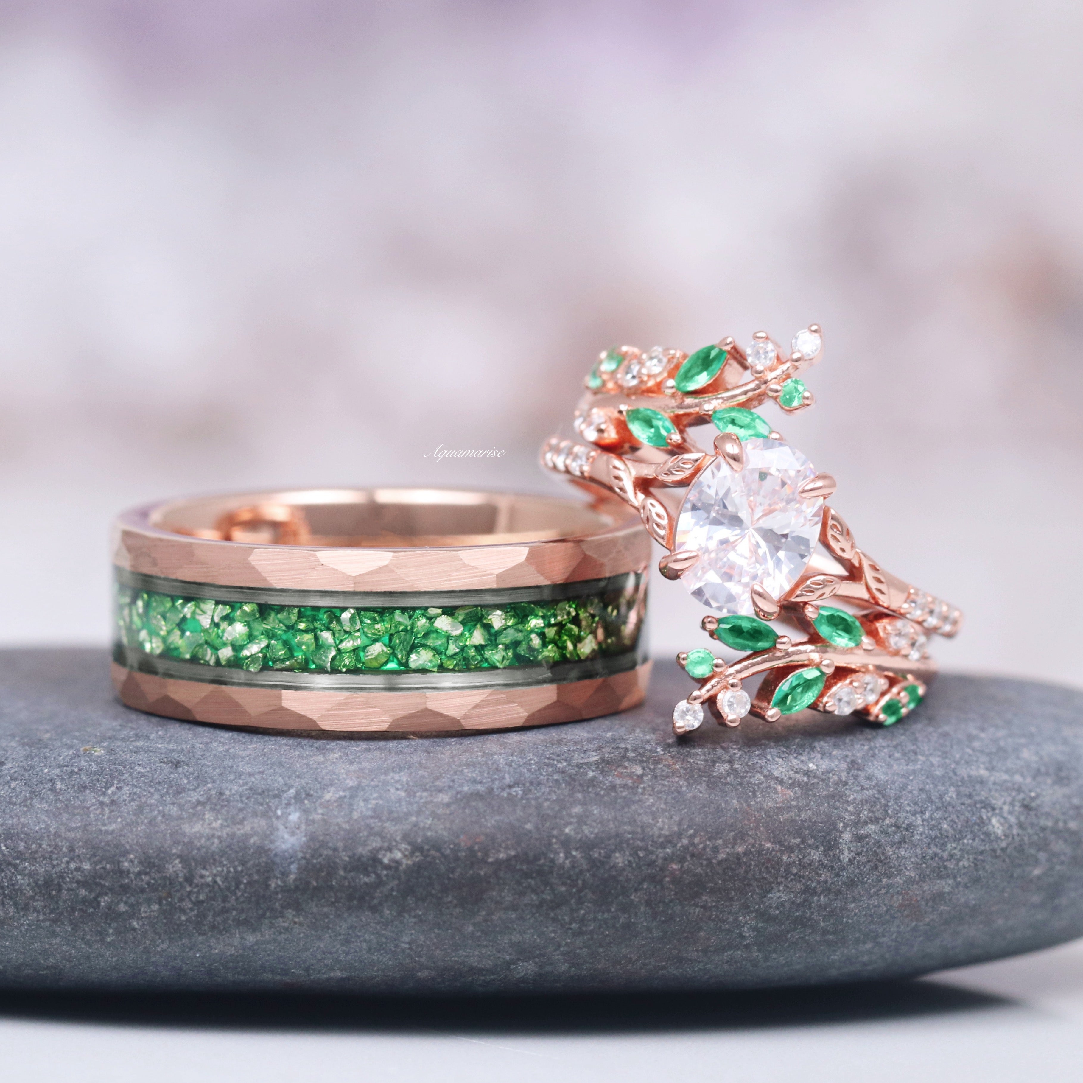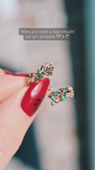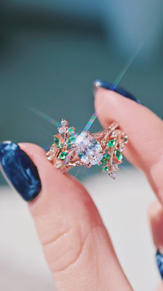 Captivate her heart with this enchanting Lab-Grown Diamond & Emerald Leaf Ring Set, meticulously crafted in 14K Solid Rose Gold. This one-of-a-kind promise ring exudes a magical, fairy-tale allure, making it an unforgettable choice for engagements, anniversaries, or any special occasion. The intricate leaf design, adorned with shimmering lab-grown diamonds and vibrant emeralds, weaves a story of growth, beauty, and everlasting love.