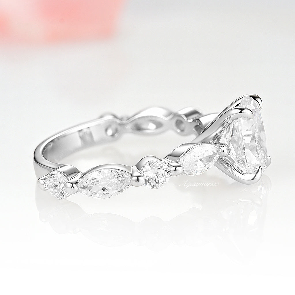 Alternating round and marquise lab-grown diamonds create an alluring pattern in this enchanting bridal ring.