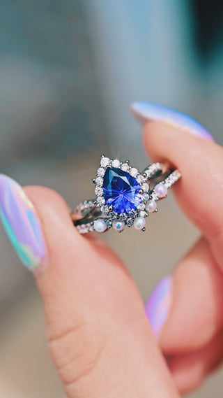 ► Ring Set: Includes 2 Pieces – Blue Sapphire Ring + Pearl Wedding Band