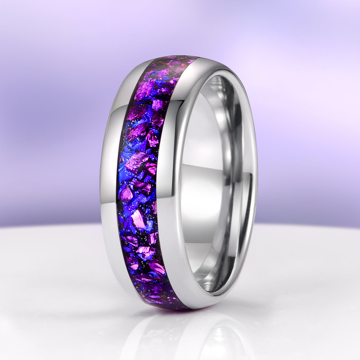►This hand-crafted tungsten ring features polished tungsten and beautiful crushed purple sandstone. Having an incredible resistance to scratching, your tungsten band is 4 times harder than titanium, 5 times harder than steel, and 10 times harder than gold. Its hardness is second only to diamonds. Tungsten will maintain its luster, beauty, and shape forever. Its eternal strength is the perfect symbol of eternal love.