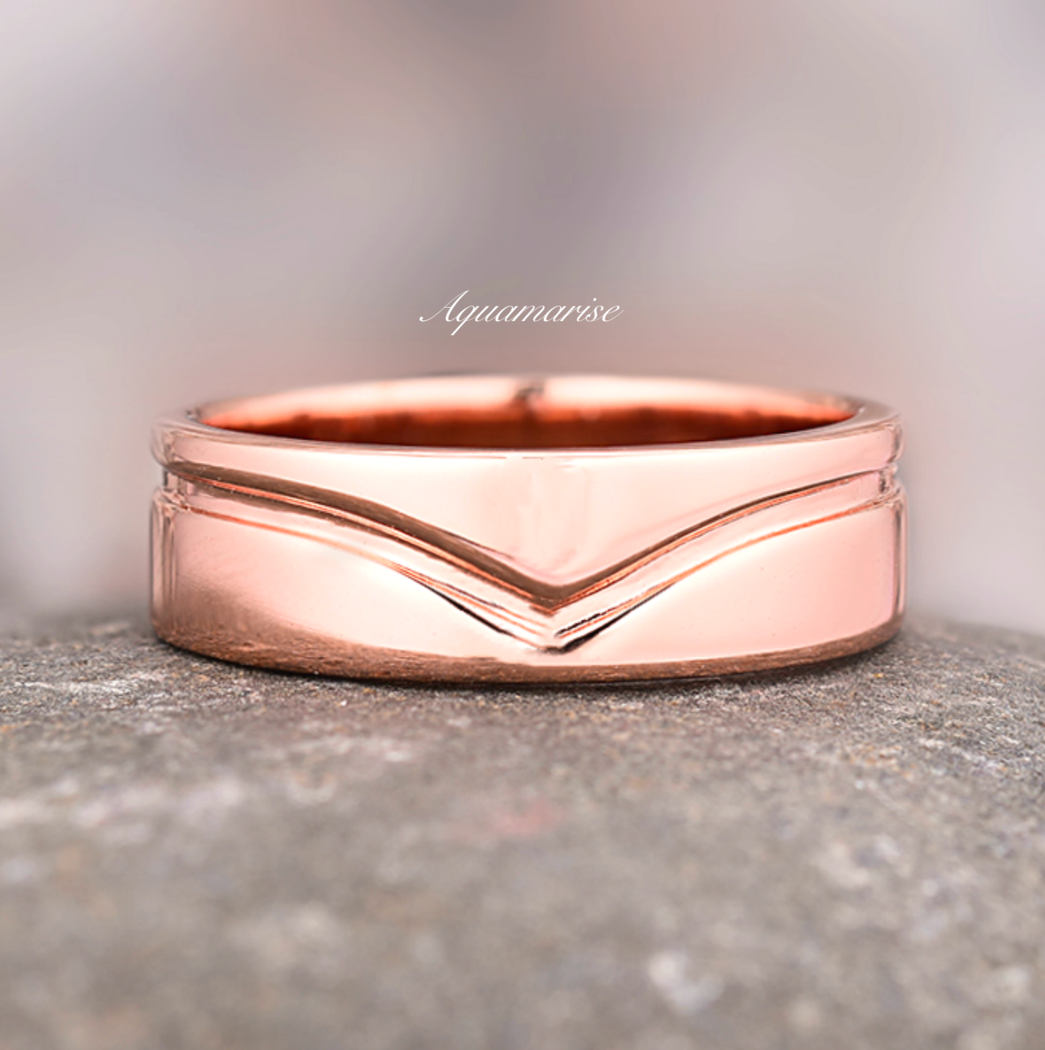 Chevron Wedding Band- 6MM 14K Rose Gold Vermeil